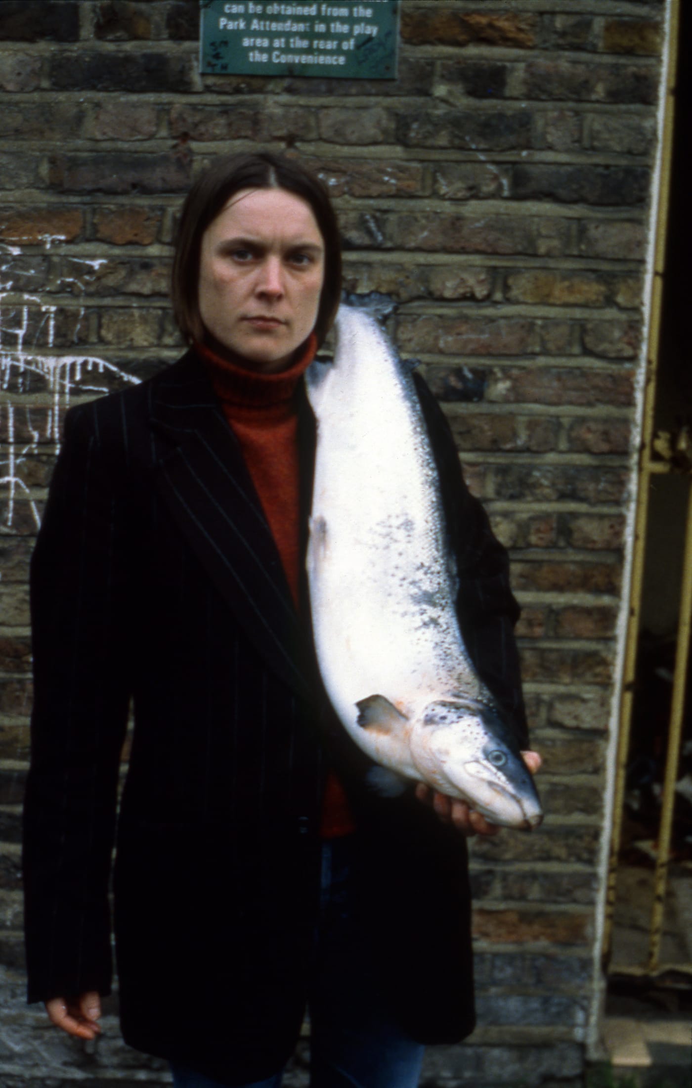 A key mechanic of Lucas’ work is cliché, which functions in the gap between logic and punchline. Instead of bridging that chasm, the artist attempts to expand that space between rationale and ridicule. There is an assumption in her work, especially in her self-portraits, that we can complete her conceptual puzzle. And why not? If we can understand the meaning behind idioms like “Cat got your tongue,” then surely we can summon the moxie necessary to accurately read Lucas’ images, like the self-portrait photograph in which she cradles a dead salmon across her left arm. The deceptive simplicity of this photograph allows a surfeit of interpretations. What immediately came to mind is how, in slang, the term “fishy” contains a double entendre: it can pejoratively refer to the smell of someone’s vagina or positively describe a drag queen’s ability to convincingly pass as female. Elsewhere, the image is defined as an overt visual pun on the idea of a female erection.