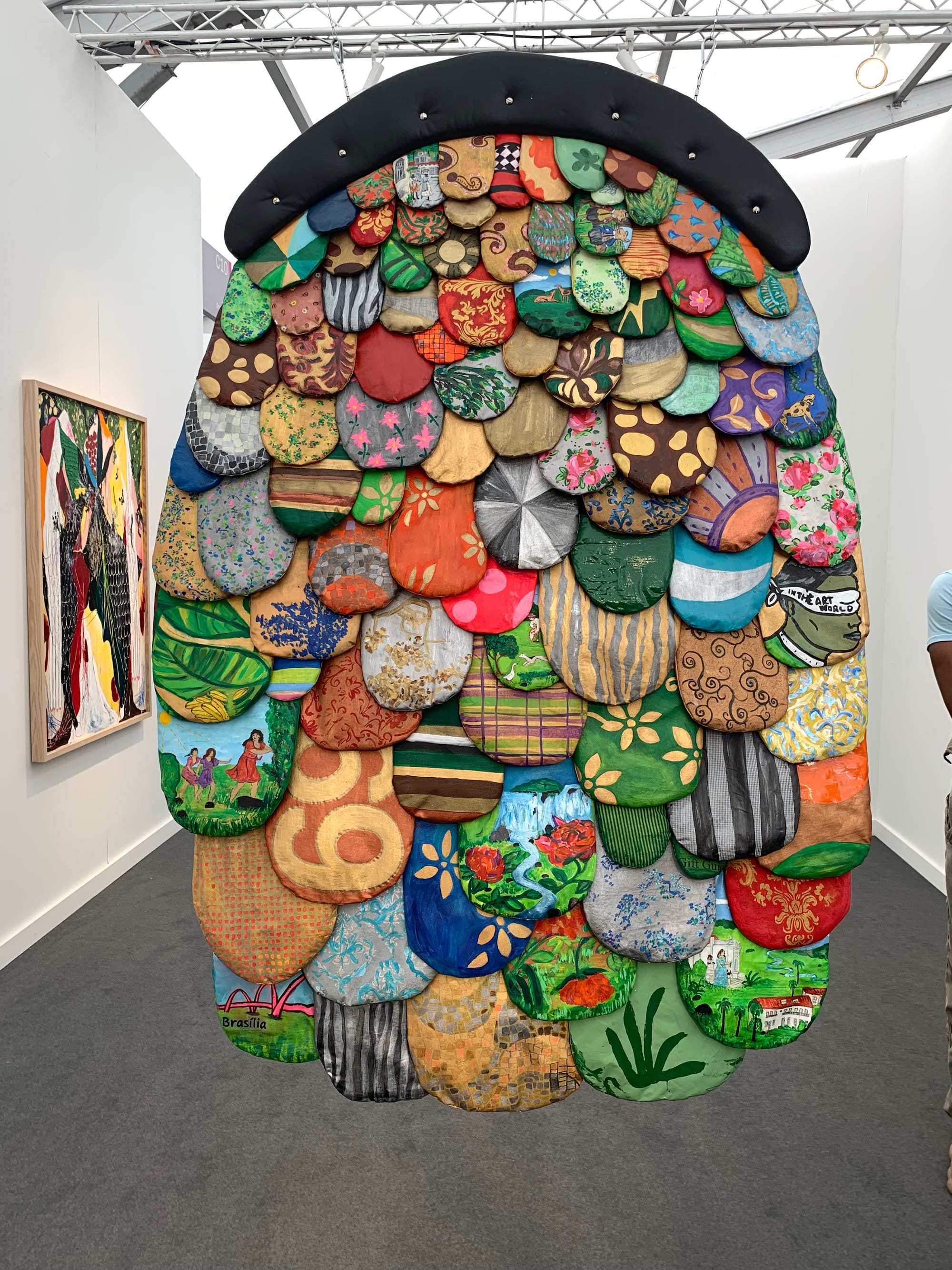 LOS ANGELES – The art world is back in full force and Frieze Los Angeles is no exception, despite the ubiquitous masks and QR codes. After a two-year hiatus, Frieze has returned to Los Angeles, and in a new venue in Beverly Hills. This year, materiality takes center stage as one of the recurring threads throughout the fair. Whether understated and poetic, as in the ceramic pieces of Simone Fattal and the wall hangings of Sheila Hicks, or exuberant and playful, as in the textile sculptures of Leda Catunda and mixed-media installations of Tschabalala Self, there is a strong sense of tactility throughout. Replacing the figurative painting that featured so heavily in 2020’s edition are instead tapestry-like works, from iconic names such as Gee’s Bend and William Kentridge to emerging artists such as Ambrose Rhapsody Murray and Igshaan Adams. It is as if, after two years of staring at works on screen, galleries knew that audiences were hungry for artwork so physical, you could devour them with your eyes and almost feel them on your skin.