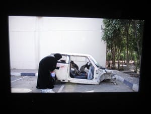 The “Future” room is where the artists raise the warning signals of a fast track society on the brink of losing their traditions — a sign of progress if you ask me — and at the same time showing signs of hope for a better future. One of my favorite artworks in this room is by Sara Abu Abdullah “ANEES 999” (2012), a video showing the artist in a hopeless situation, where she is trying to paint a completely damaged car in the hopes of trying to fix it. The artist says: