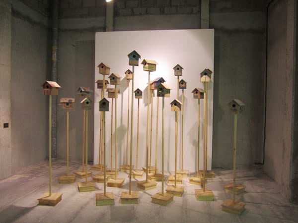This room featured some of my favorite pieces, including newcomer Ibrahim Abumsmar’s “Bird House” (2012) installation, simply stating that “if we didn’t chop down trees, then we wouldn’t need birdhouses.” Next to it are three pieces by Saudi contemporary artist superstar (and Lieutenant Colonel) Abdulnasser Gharem, my favorite is the “Inshallah Stamp” (2011), which means “god willing” in Arabic, and evokes how this phrase is casually used in Saudi society to delegate responsibility to the will of God and leaving it at that. The stamp has “Have A Bit of Commitment” written above the central phrase and seems to say “have a bit more intellectual rigor, more bravery, more faith in your convictions. In committing to this action, I become my own authority and the controller of my own destiny.”