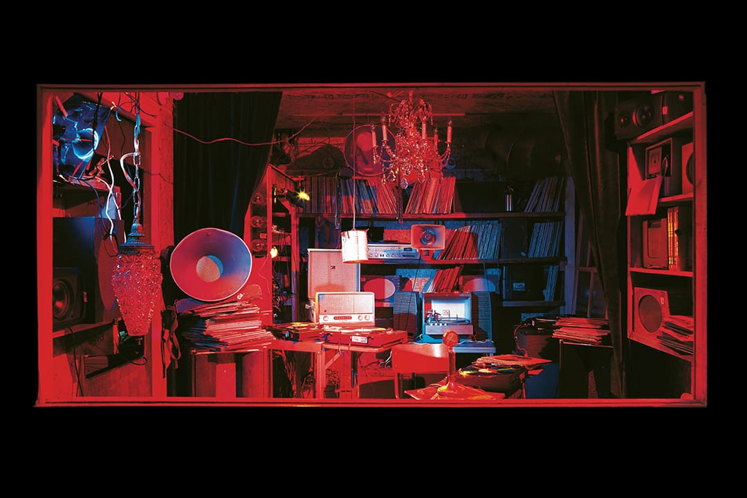 Janet Cardiff and George Bures Miller, “Opera for a Small Room” (detail) (2005), mixed media with sound, record players, records and synchronized lighting, 102″ x 118″ x 177″ (courtesy the artists and Luhring Augustine Gallery, New York)