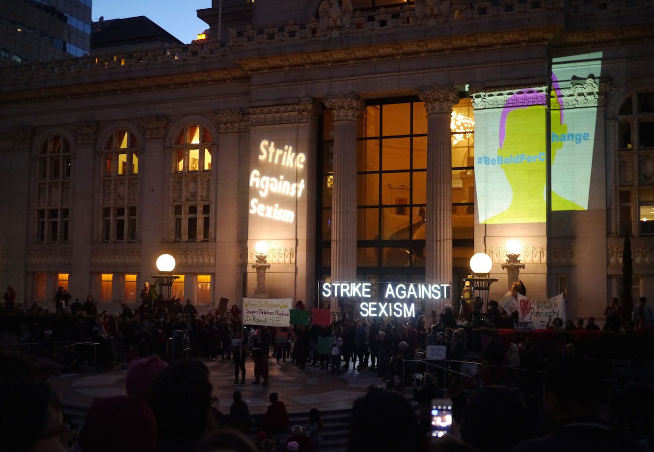 Many of Hyperallergic’s female employees and contributors went on strike yesterday (myself included), but we did take some photographs while we were out. Here’s a taste of what we saw in Oakland and New York City.