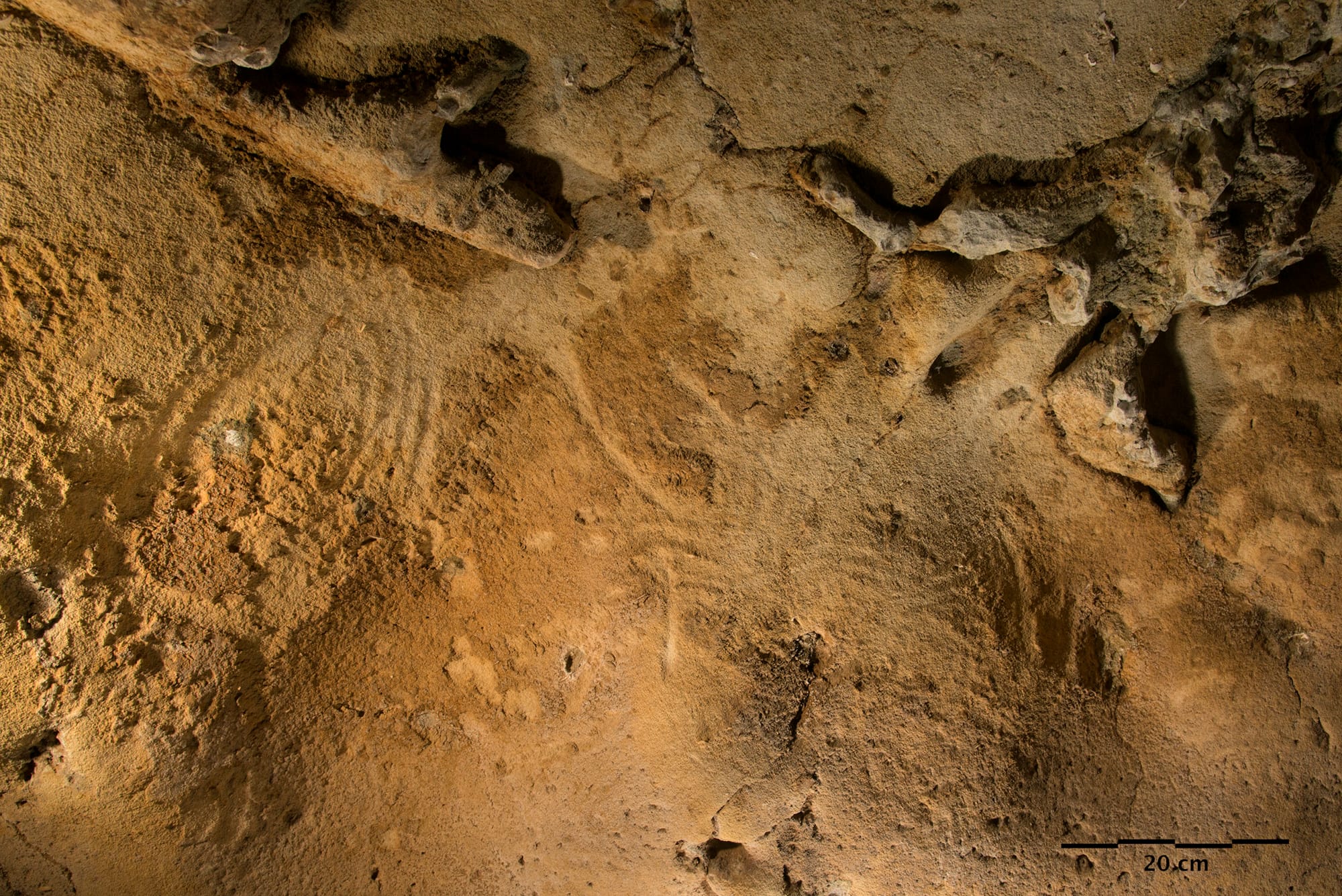 In one panel near the cave's entrance, a Neanderthal creator carved two sides of a triangle into lower parts of the soft clay-like surface, effectively creating a raised shape. The bottom-most point of the triangle overlaps with a naturally occurring rock. Not only do Marquet and his team argue that the creator considered the wall shape in crafting their work, but that they slowed their fingers as they approached the apex of the triangle, thereby creating a decisive end to the line. (The scientists discovered this by examining the depth of the marks.)