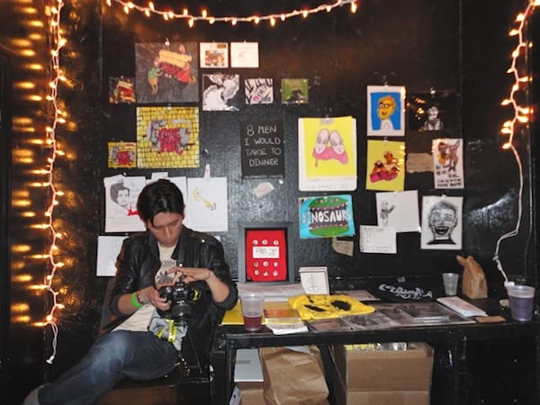 Without much of a comprehensive mission statement, Doodle Drag jokingly aimed to create an “immersive” experience for their audience. Paternoster has explained that Doodle Drag aims to harness the overwhelming energy of punk shows and to bring that kind of enthusiasm to underground art. Again, this relationship between art and music is part of the scene’s history. Punk rock and its ephemera have always gone hand in hand, resulting in coffee table books like Fucked Up + Photocopied and Punk is Dead Punk is Everything by Bryan Ray Turcotte, as well as Punk House by Abby Banks. Visual artists, Raymond Pettibon chief among them, have defined punk through their own dark subject matter and nihilistic aesthetics. Now, Paternoster is doing the same with her own artwork, even teaming up with LNY to paint a mural on one of Williamsburg’s major DIY music epicenters, Death by Audio.