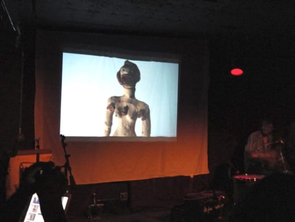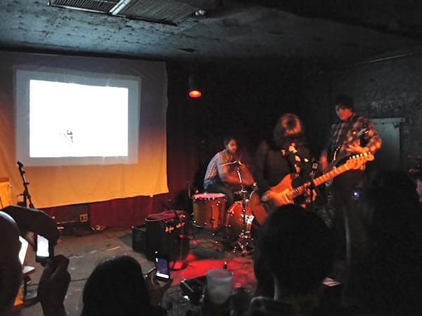 When the time came to start the show, Screaming Females squeezed onto the relatively small stage at Maxwell’s, just to the right of a blank sheet on the wall, which served as a projection screen. “We’re Screaming Females!” Paternoster squeaked out, and as the lights went down, she introduced the first artist: Tiffany Cheng, who illustrated the song “Wild,” off of the band’s latest LP, Castle Talk. The work projected onto the sheet ranged from photograph-based and stop-motion animations to felt pen drawings, grotesque and beautiful all at once. The artwork suited the music — dark, jubilant, fun, neurotic — visual and audio codes that we forget to interpret because we’re so busy enjoying it.