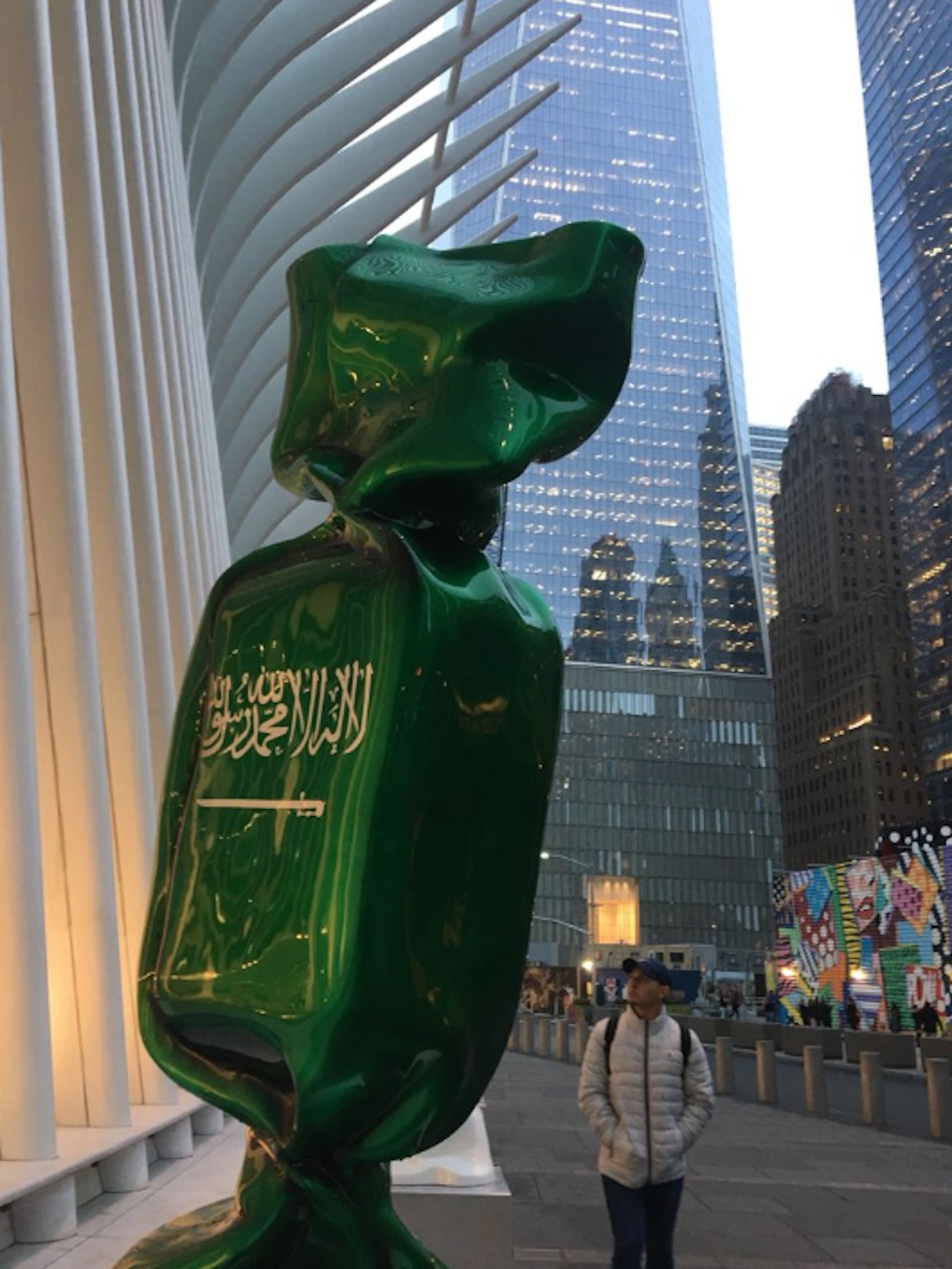 Sponsored by the Port Authority of New York and New Jersey, “Candy Nations” honors the G20 countries with a series of 9-foot-tall statues of their flags shaped as glossy packaging. The exhibition has previously gone on display in New York City’s Garment District and the Port Authority Bus Terminal without issue. But when the sculpture series arrived just outside the WTC’s Oculus building, passersby criticized Jenkell’s work on social media; in particular, some objected to the Saudi Arabian flag’s presence so close to the 9/11 Memorial grounds.
