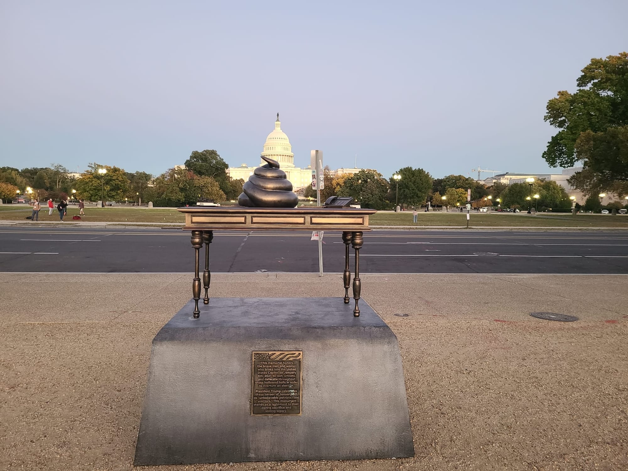 "This memorial honors the brave men and women who broke into the United States Capitol on January 6th, 2021, to loot, urinate, and defecate,” reads a plaque.
