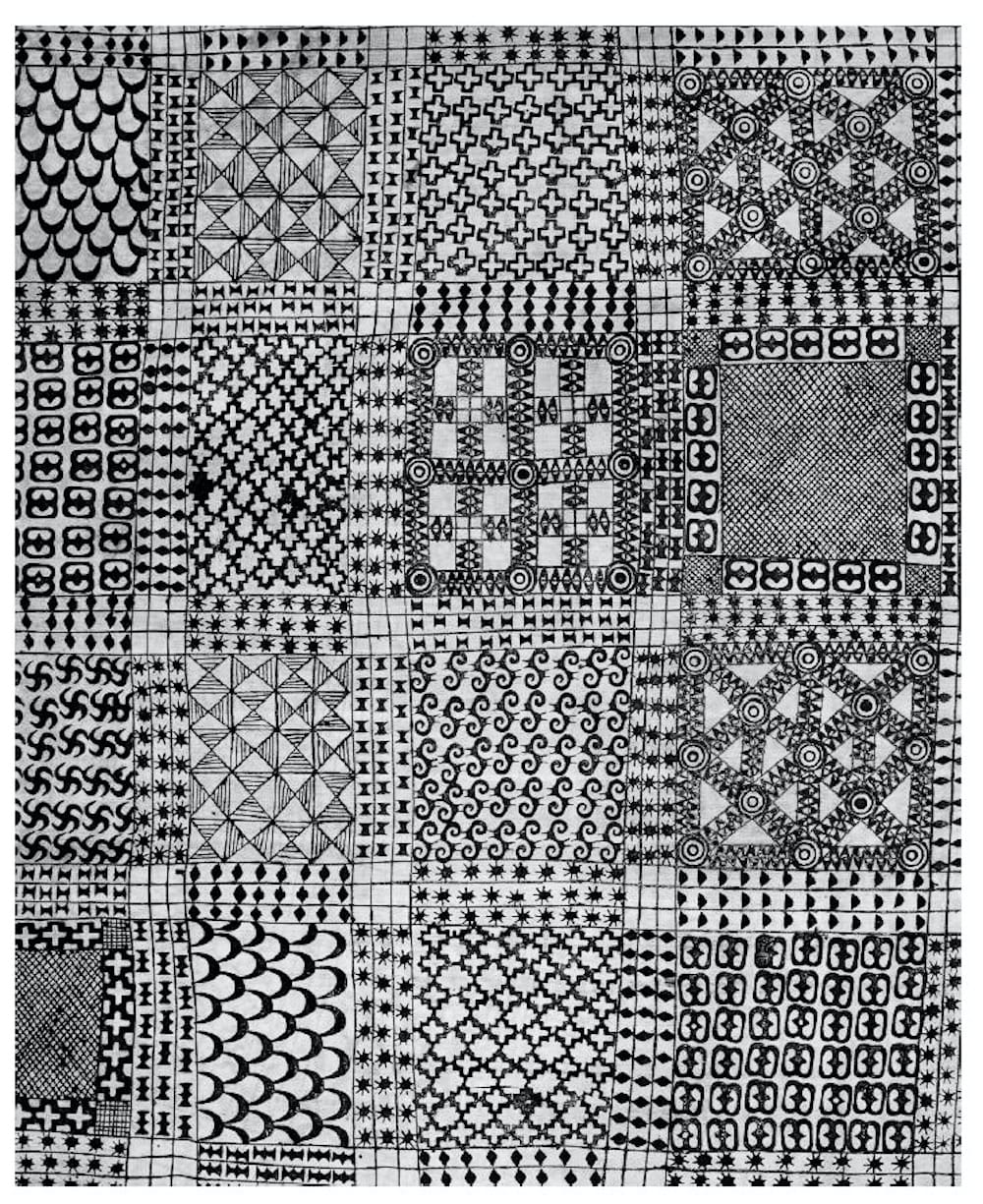 Rather than a cultural survey, Weil presents his designs almost as an experiment in geometry. He wouldn't be the first: since the work of Evgraf Fedorov in 1891, mathematicians have determined 17 categories, called “Wallpaper groups,” that virtually all repeating pattern designs fall into. But using math to study cultural patterns and designs does not have to be divorced from culture itself. In fact, there’s an entire field of “ethnomathematics,” in which researchers analyze ornamentation in crafts like folk embroidery. Abu Qouder Fouze and Professor Miriam Amit have analyzed the “ethnomathematics of Bedouin women,” showing how their embroidery reflects a deep understanding of complex geometrical laws. Weil cites the special attention paid to geometry in Islamic artwork in spheres where there is less figural imagery, but otherwise does not explore these types of previous mathematical innovations.