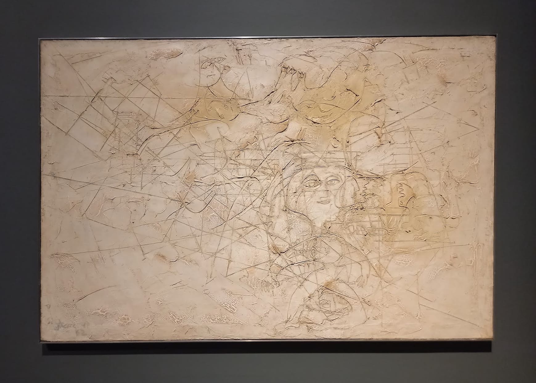 For example, Scars contains a series of impasto paintings by Frank Auerbach and Leon Kossoff. When viewed through the prism of the title, the violence of the impasto technique becomes apparent; in "Willesden Junction, Early Morning" (1962) Kossoff’s brushstrokes swipe deep gouges into the earth, which resembles London's Willesden area no more than if it were razed by shelling. The works also allude to the mental “scars” of war trauma, or the physical signs of healing post violence. The curatorial process mirrors that of the artists’ — how do you make sense of senseless destruction and loss of human life? The overall feeling throughout is one of catharsis.