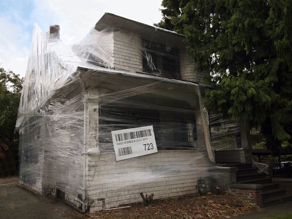 Mad Homes is a fascinating lo-fi community approach to public installation. A local nonprofit, Mad Art, invited 14 artists to create interventions in homes that are soon to be demolished in Seattle's Capitol Hill neighborhood. The result is a mixture of installations that consume, infiltrate and sur