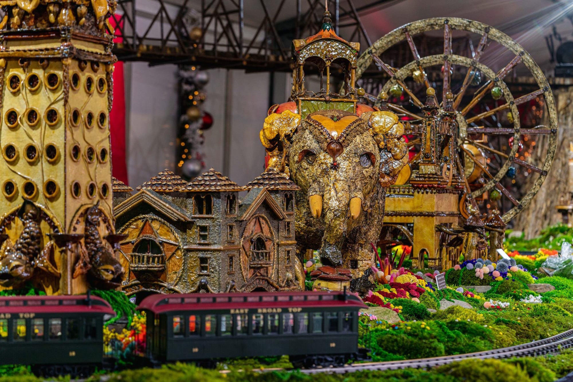 This year's train show is the biggest to date and stars Coney Island's long-gone giant elephant, Manhattan's demolished old Penn Station, Hudson Valley mansions, a miniature Central Park, and a host of museums including the Metropolitan Museum of Art, the Frick, and the Guggenheim, among other structures.