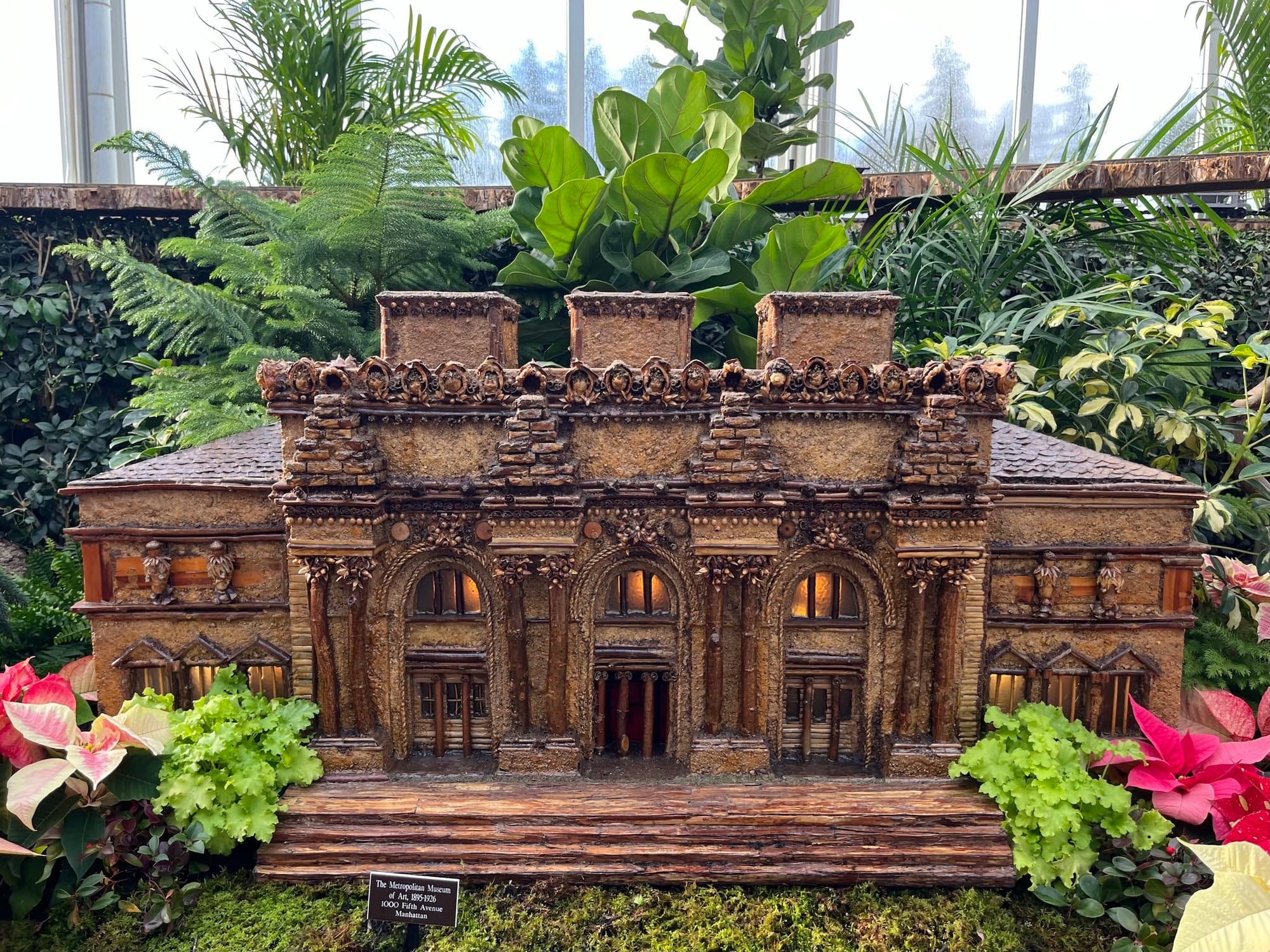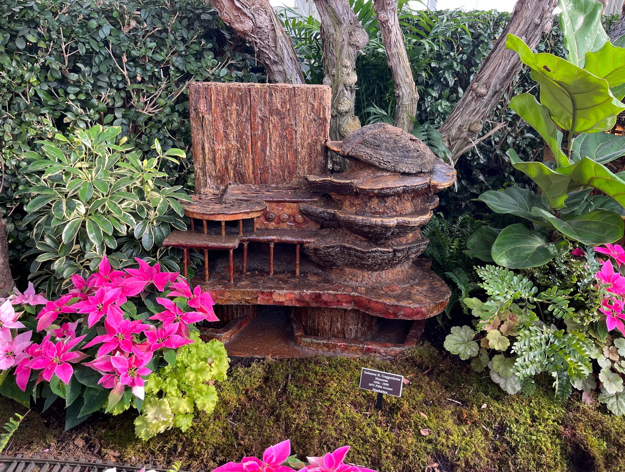 "I think Frank Lloyd Wright would very much approve of this," Dolan said of the mini-Guggenheim made of "cobbled together" pieces of shell fungus. Another standout is a copy of NYBG's Mertz Library. It's decorated with black walnuts that an NYBG staff member collected and arranged on a perfect recreation of the garden’s real-life hill.