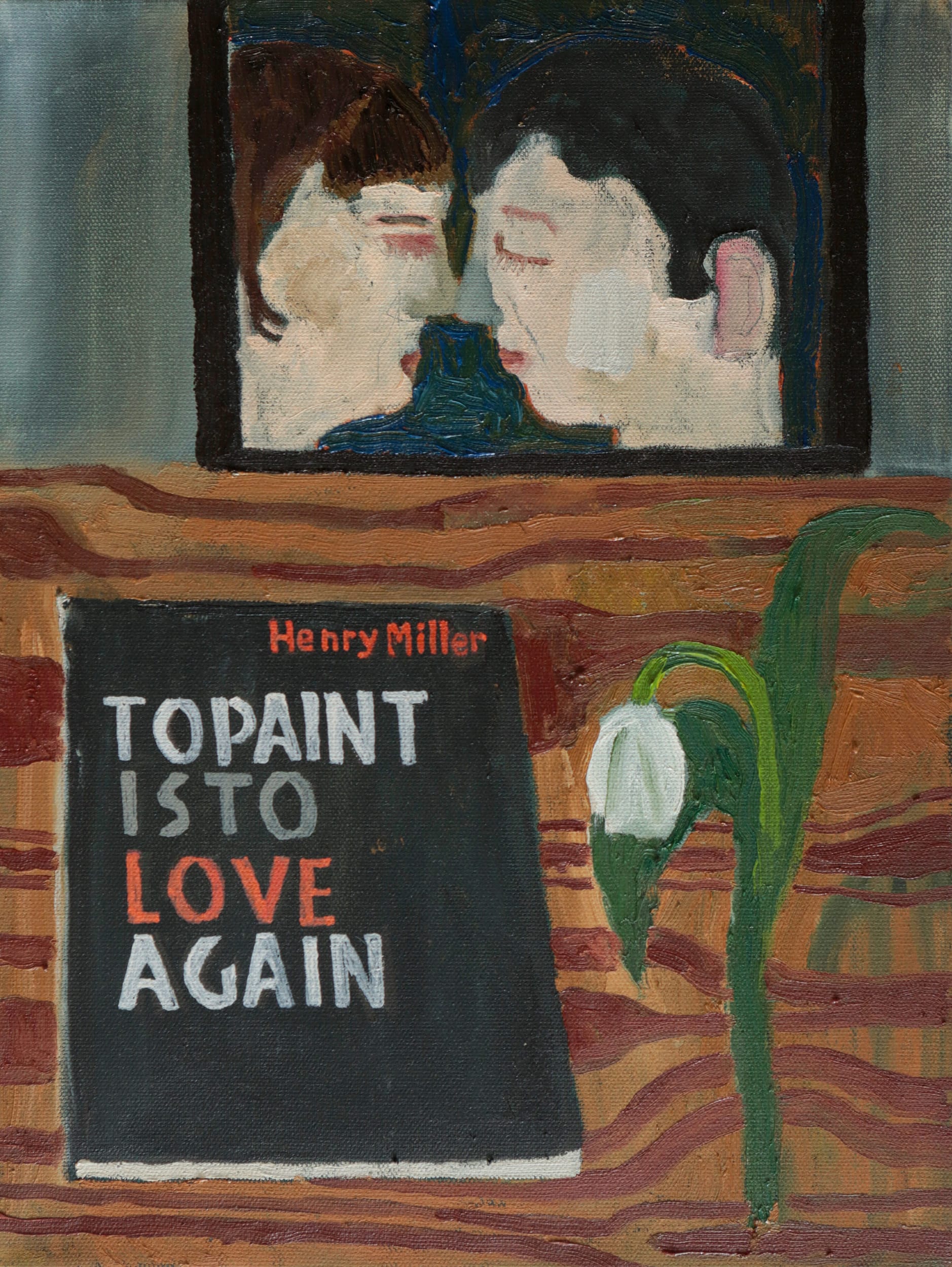 Schuyler loved flowers and was familiar with different species. He wrote about what he saw while sitting in a garden, living with Fairfield Porter and Porter's family in Maine, or looking out the window of his New York apartment. He was a keen observer of everyday life. Milroy seems to feel an affinity with him. “Marvelous Universe” (2023) follows the same compositional format, but the book pictured is Henry Miller’s To Paint Is to Love Again. I love that a book by a reclusive, queer poet is in one painting and a little-known book by a highly social, heterosexual man, who was accused of writing pornography, is in the other. That breadth suggests that he has a genuinely capacious appetite for culture.