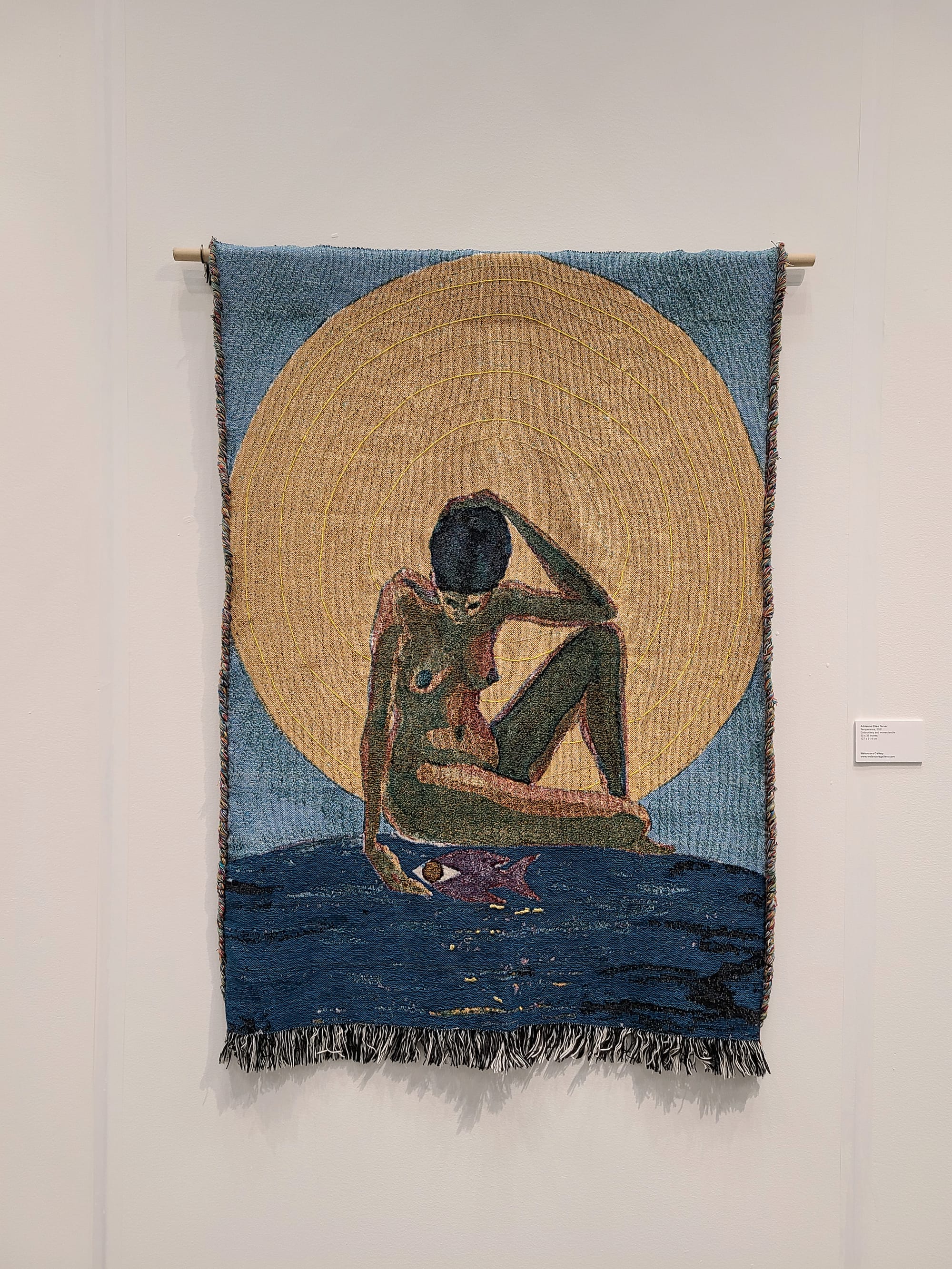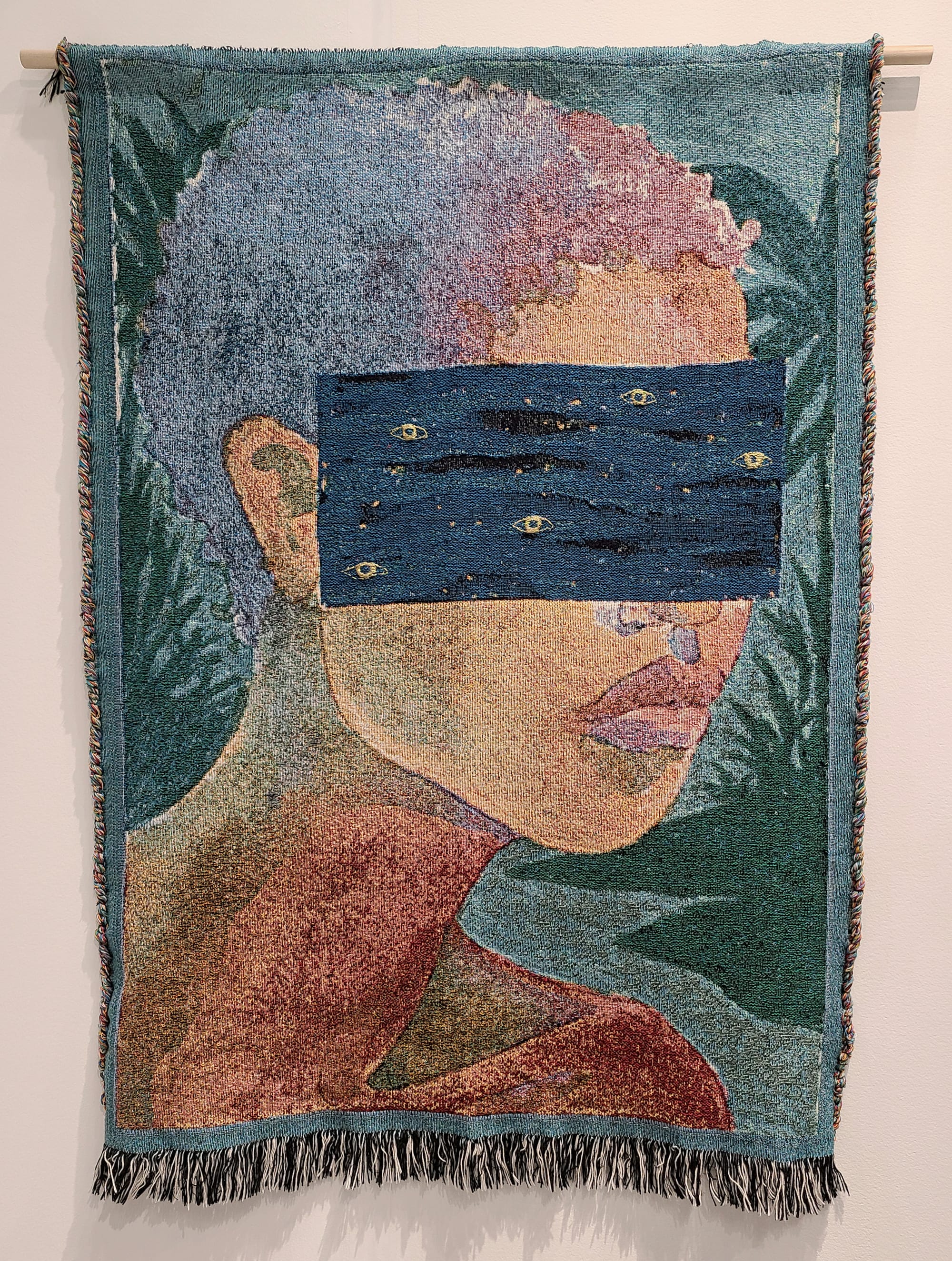 At Welancora gallery, Brooklyn: Adrienne Elisa Tarver, “High Priestess” (2021) embroidery and woven textile, 50 x 36 inches