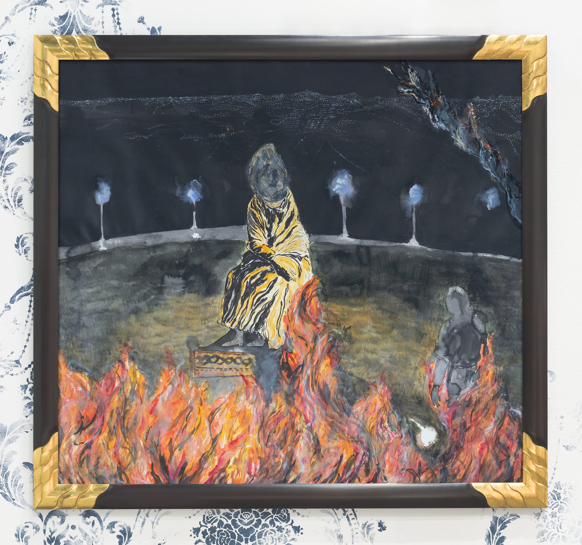 At Anna Zorina gallery: Kambui Olujimi, "Late Stage Love Affairs" (2021) watercolor on paper 40.75 x 44.5 inches (image courtesy Anna Zorina gallery)
