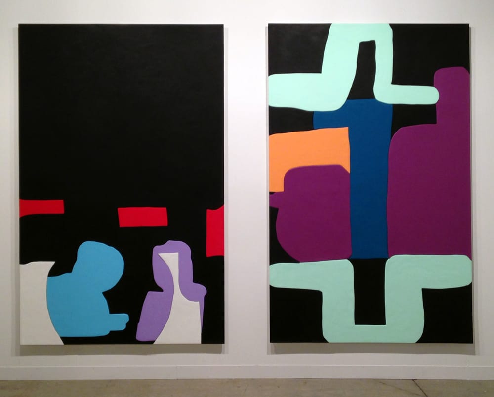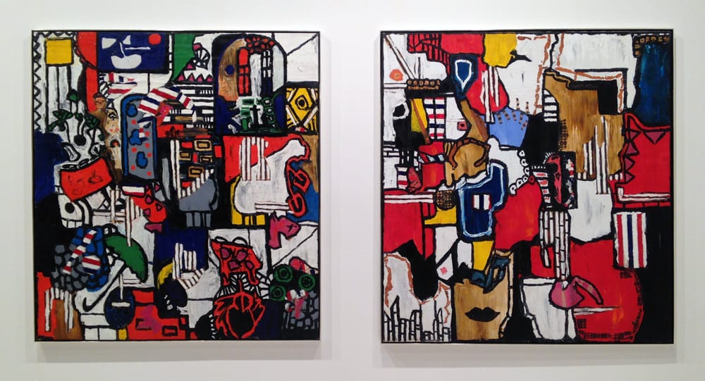 And Iannone’s oil-on-canvas works at first look like abstractions, but then various discernible elements become clear: a profile; a pair of lips; an umbrella — all of which meld into the more unrecognizable elements. You’re never sure of what you’re looking at, and with everything laid out in slabs of bold color outlined in black, the paintings feel of a piece with the work made at the same time by Jean Dubuffet, who was himself a sizable presence among many of the booths.