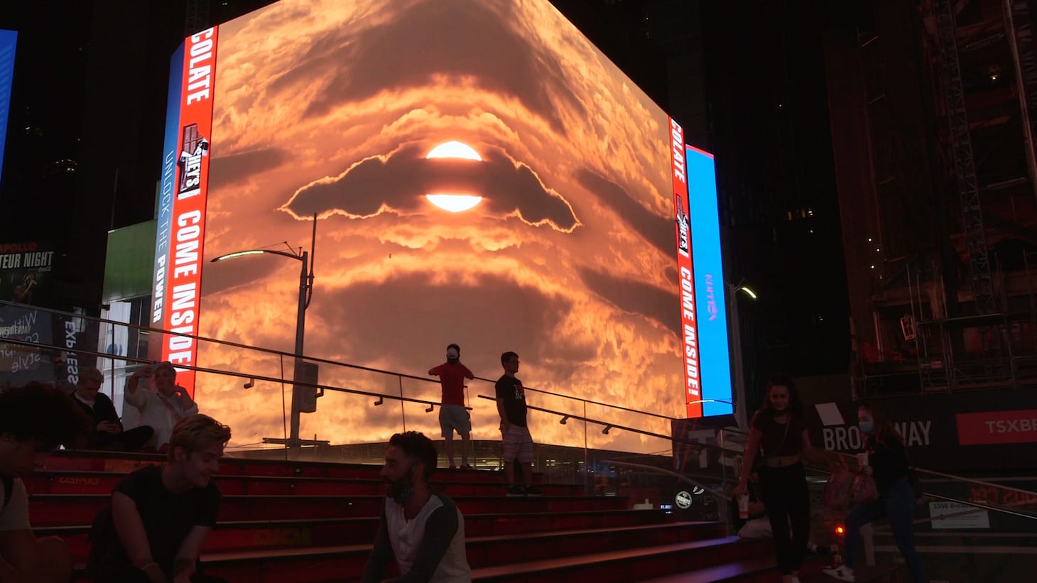 Since 2012, Midnight Moment has regularly held three-minute-long exhibitions across Times Square’s electronic billboards and kiosks at night. This month, Kambui Olujimi combines over 40 images of skies all over the world into a kaleidoscopic, collective sky that constantly shifts — offering viewers a meditative moment amid these uniquely precarious times. The work will also stream online with audio, featuring a version of Dee Dee Warwick’s song “I’m Gonna Make You Love Me.”