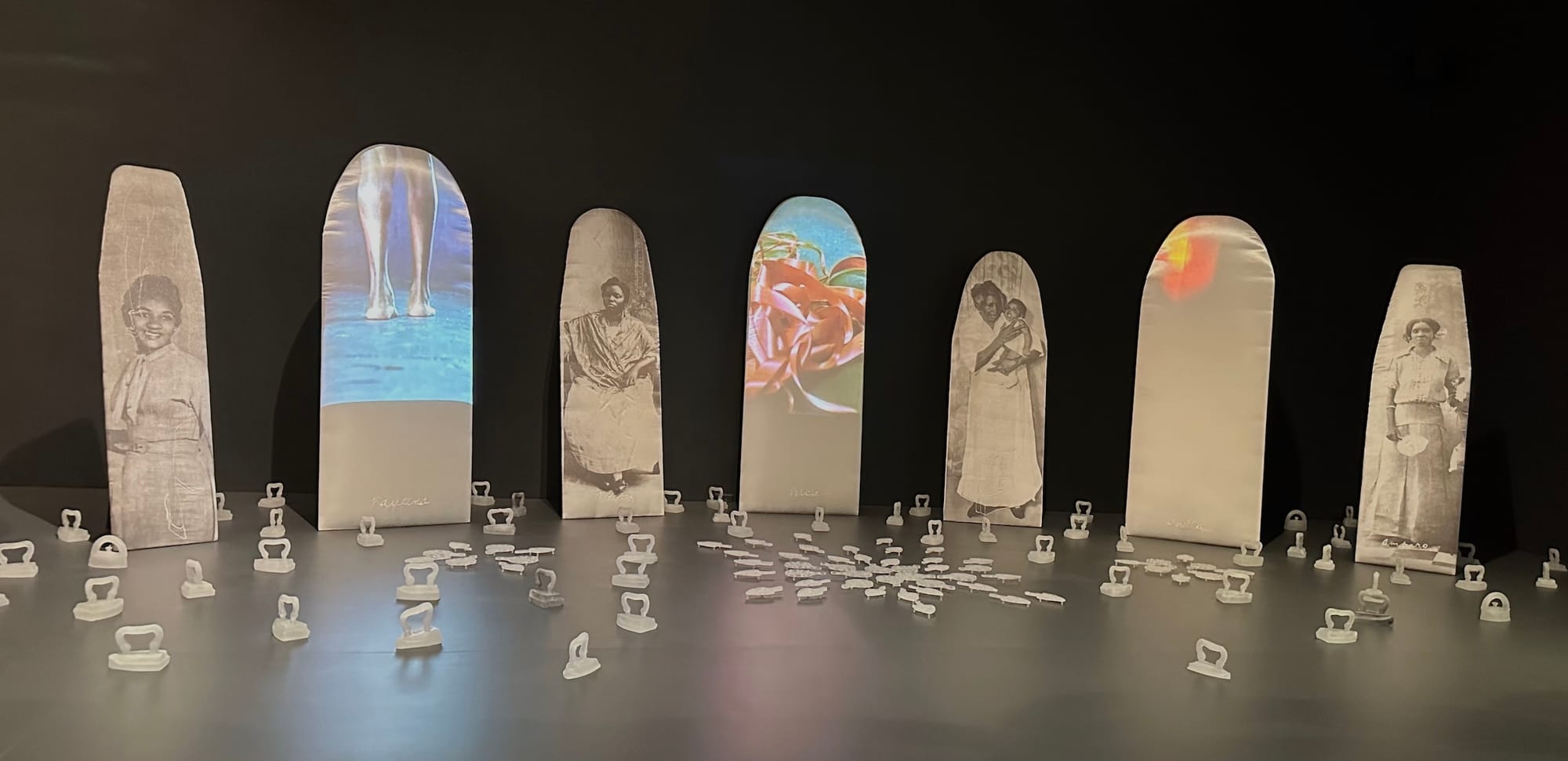 More successfully, Campos-Pons’s “Verse Three” tackles the Western lack of recognition of Black validity: in contributions to art, in the power and gift of Black women, in Cuba’s struggle for autonomy, and more. Greene brings in saxophonist Neil Leonard’s heavily researched compositions for Campos-Pons’s work, such as the performance piece Identified (2016), connecting the dots with late Afro-Cuban singer Celia Cruz’s distinctive use of sugar — ¡Azucar! — as a claim of feminine, Black, and Afro-Caribbean power.