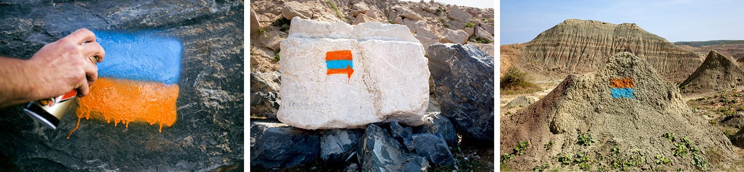 “No one knew exactly where the canal would be, so I made my route anticipating its most probable path from an engineering perspective,” Taycan says, explaining that he drew on his original training as a civil engineer in surveying, way-marking, and mapping the route. Building on his previous artistic work Shell, a series of images of the large-scale construction projects transforming Istanbul’s periphery, Taycan shot photographs at every kilometer mark of his walk, recording their GPS coordinates as a way of preserving a record of a city in the midst of rapid change.
