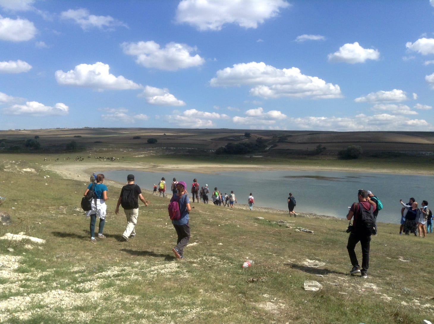 Taycan first exhibited the map and photos of his walking project, entitled Between Two Seas, at the 13th Istanbul Biennial in fall 2013, when he also began organizing group walks along the route. Since then, he has led hundreds of people over the four-segment walk, in 33 events to date. Using his map as a guide, others have cycled, run, and camped along it independently. As the canal project has become a subject of renewed political controversy in recent months, activists have also begun organizing protest walks along the Between Two Seas route, most recently a seven-mile outing on Sunday, February 2.