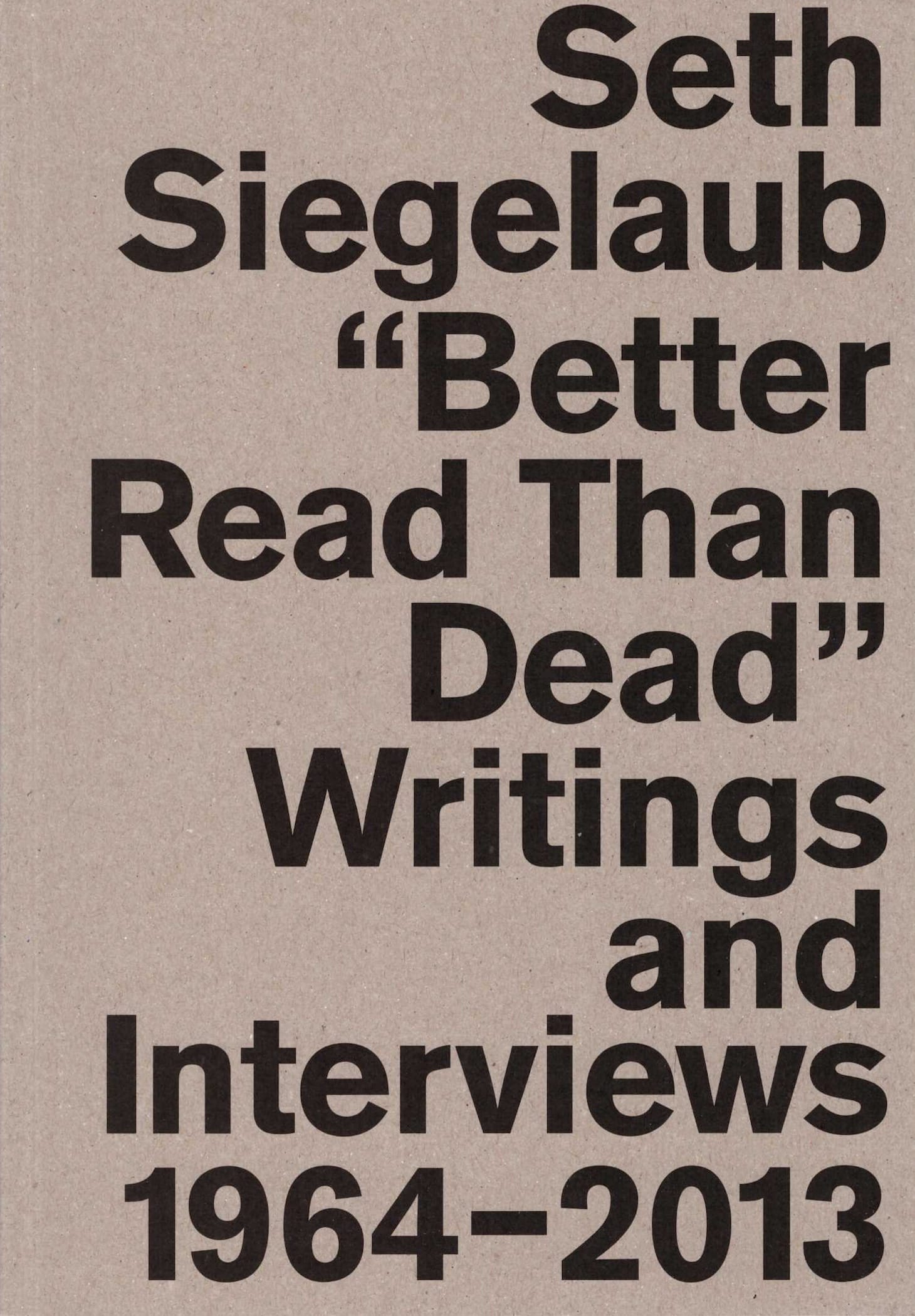 Seth Siegelaub: "Better Read Than Dead” Writings and Interviews, 1964–2013 (2020) is edited by Marja Bloem, Lauren van Haaften-Schick, Sara Martinetti, and Jo Melvin, and published by Walther König. It is available online and in bookstores.