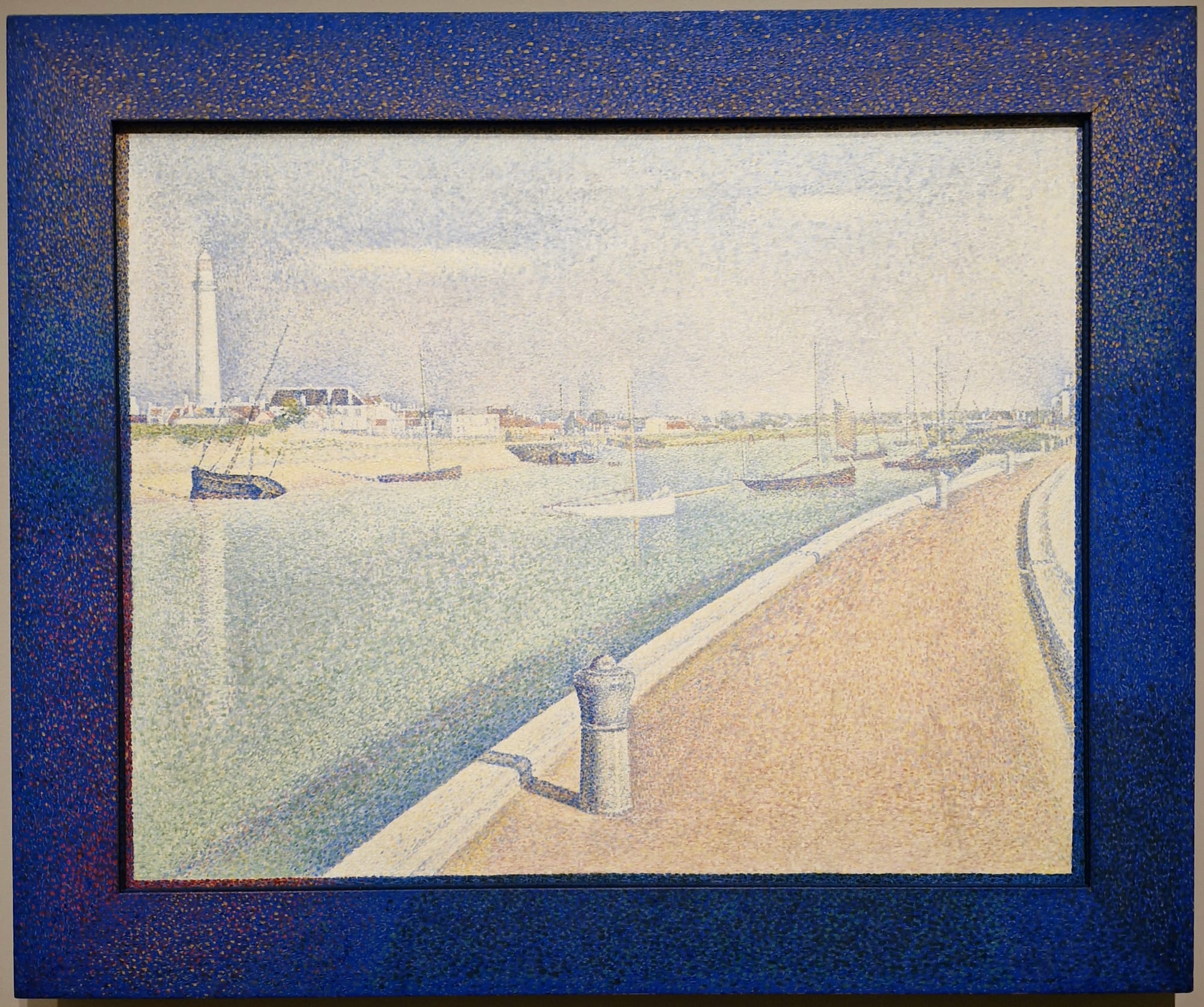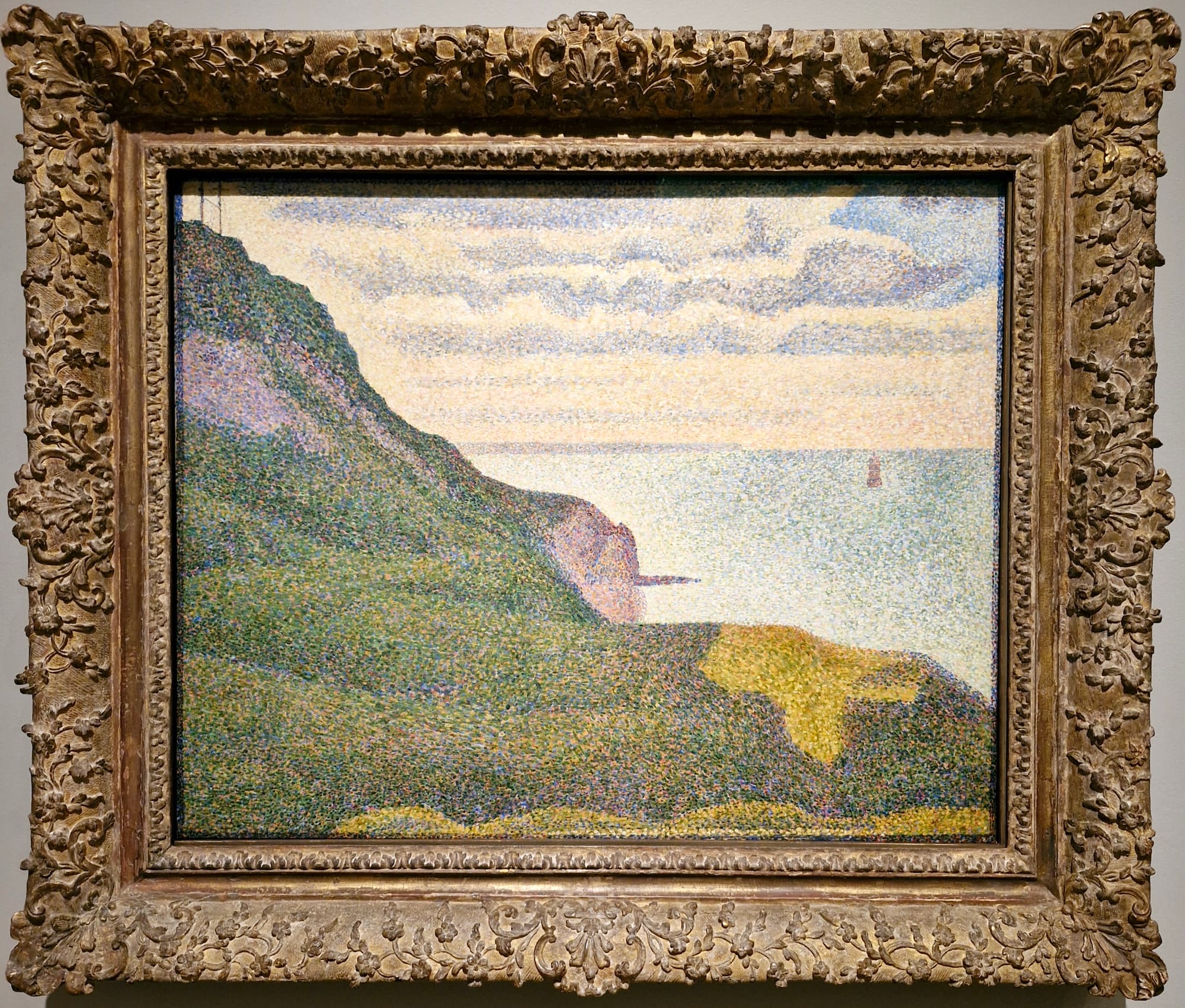 This is not to belittle it in the slightest, for the paintings were conceived as such. Of the 45 or so canvases that Seurat produced in his lifetime, we are told that over half are seascapes painted during annual summer trips to the Channel coast between 1885 and 1890, and he intended them to “cleanse one’s eyes of the days spent in the studio.”