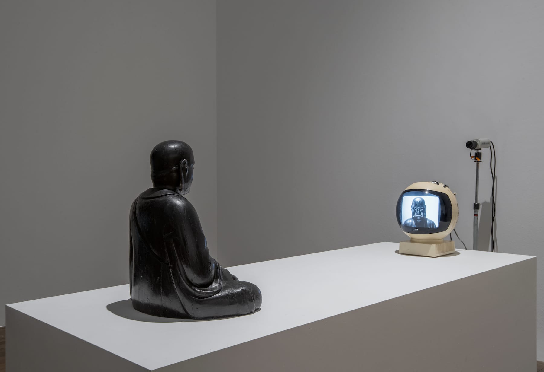 Organized thematically, the exhibition will unite many of Paik’s most iconic and provocative works from throughout his career. In TV Buddha (1974), an 18th century wooden Buddha appears to watch itself on a modern television, typifying the influence of Zen Buddhist philosophies on Paik’s approach to art and technology. Also on view will be TV Garden (1974–77/2002), an immersive installation featuring dozens of TV sets alongside lush foliage in a futuristic landscape where technology is an integral part of the natural world.