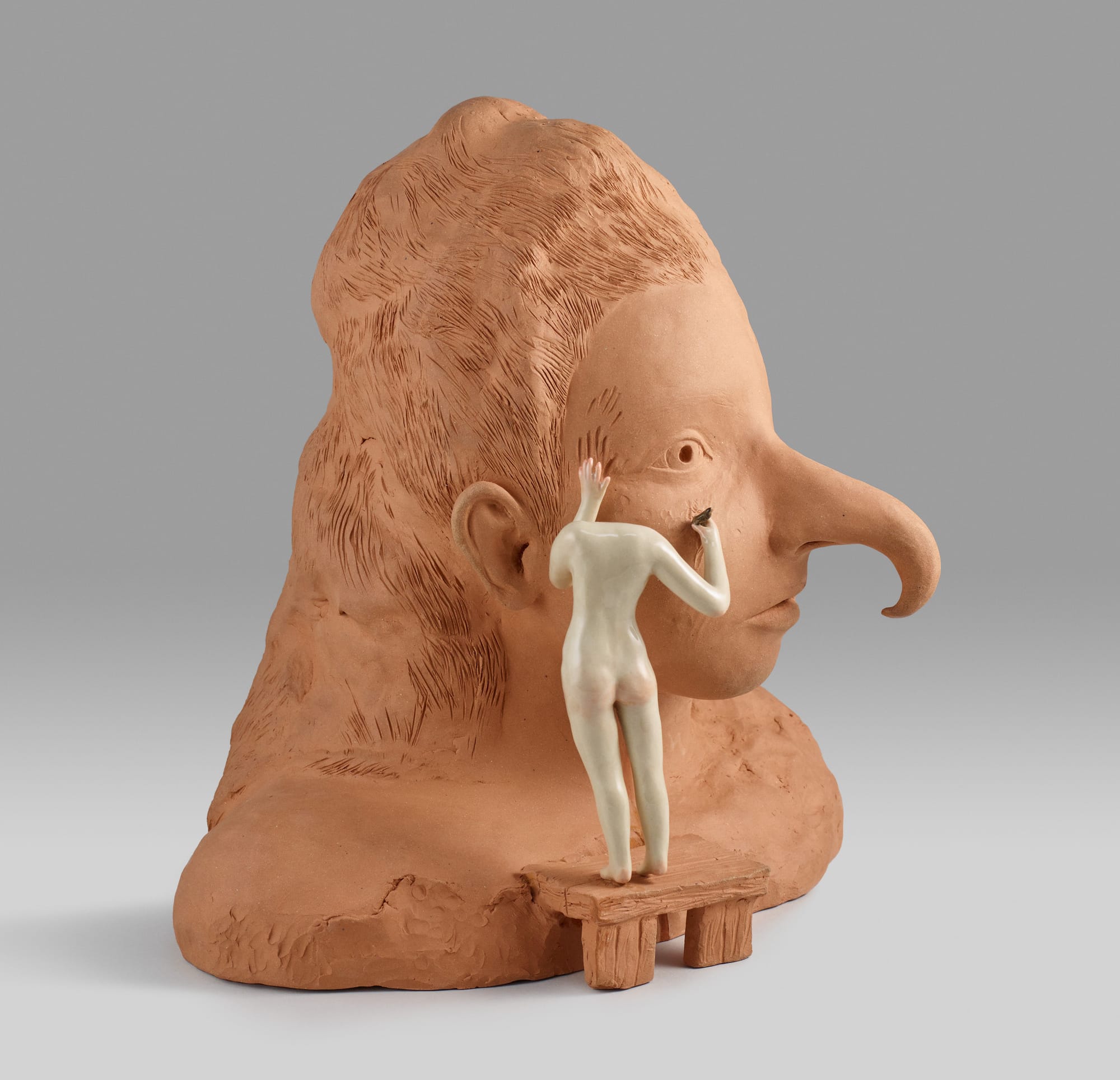 Shary Boyle: Outside the Palace of Me aims to explore the forces that create our inner and outer selves, both individual and collective. On view at the Museum of Arts and Design (MAD) in New York City through February 25, 2024, the multisensory solo exhibition of new works by the Canadian visual artist includes sculpted ceramics, life-sized automatons, two-way mirrors, a coin-operated sculpture, and an interactive soundtrack. To help realize her creative vision for the show, Boyle enlisted a team of collaborators; including a scenic designer, costume artist, robotics engineer, amusement park innovator, and acrylic nail artist. Each work in the exhibition is a testament to slow, skilled, passionate handcraft.