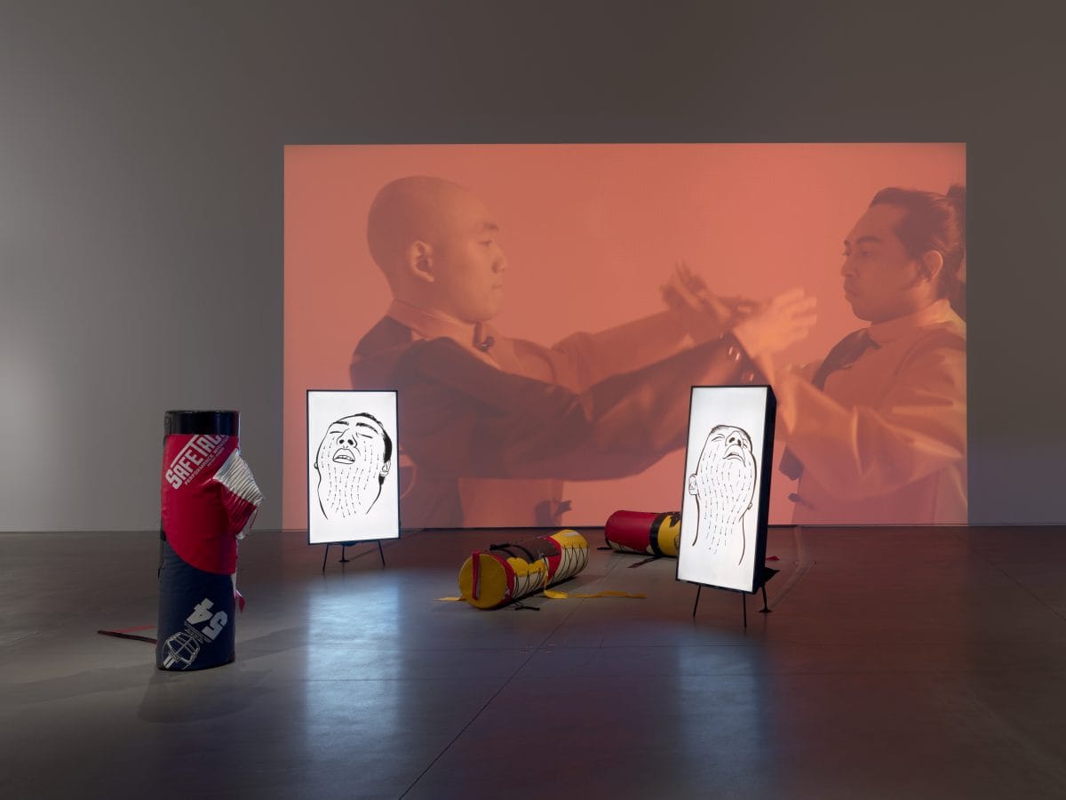 Standouts among the cohort of New York-based artists include Kenneth Tam’s video and sculptural installation “The Crane and The Snake.” In remembrance of the 2013 hazing death of Pi Delta Psi pledge Chun “Michael” Deng, the Queens-born artist has continued to explore Taoist-inspired alternatives to the sort of ritualized violence that takes place in Asian American fraternities, through explorations of both gendered performance and identity formation.
