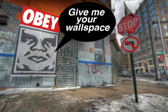 The OBEY crew is looking for wall space. So, if you want a “genuine Shepard Fairey/OBEY mural” for free join the “OBEY phenomenon” and help contribute to the “enhancement of the urban landscape.”