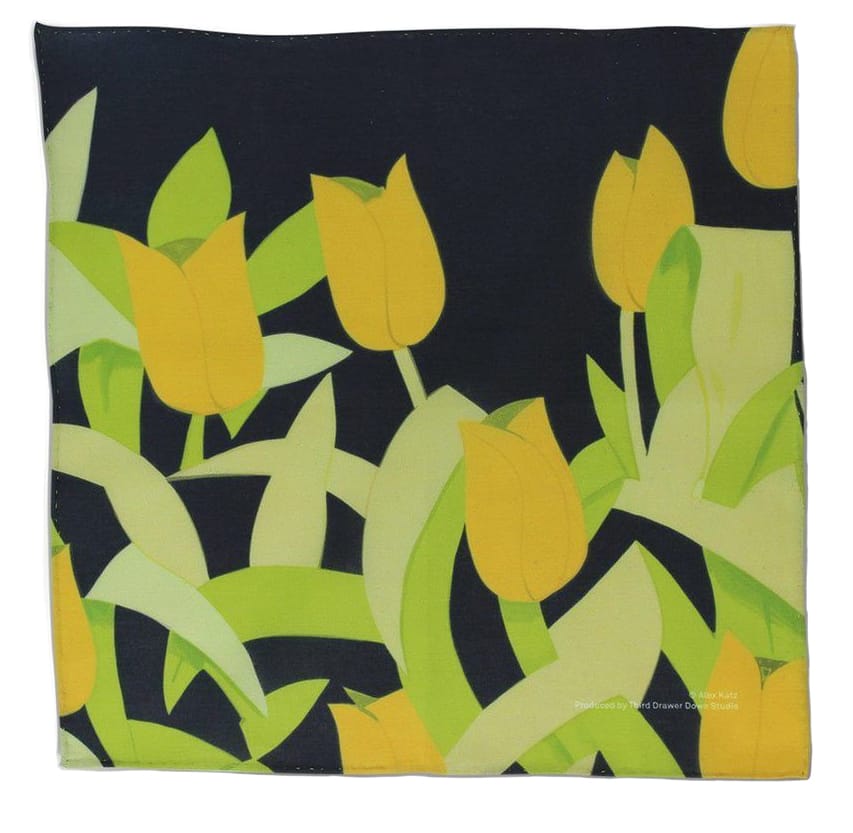 One of our most popular handkerchiefs is back in stock at last! It features the painting “Yellow Tulips” by Brooklyn-born artist Alex Katz, and the last time we had it, it flew off our shelves in just a few days. Grab yours while they last, but don’t worry if you just missed them — this floral pattern also comes as a pretty linen tea towel.