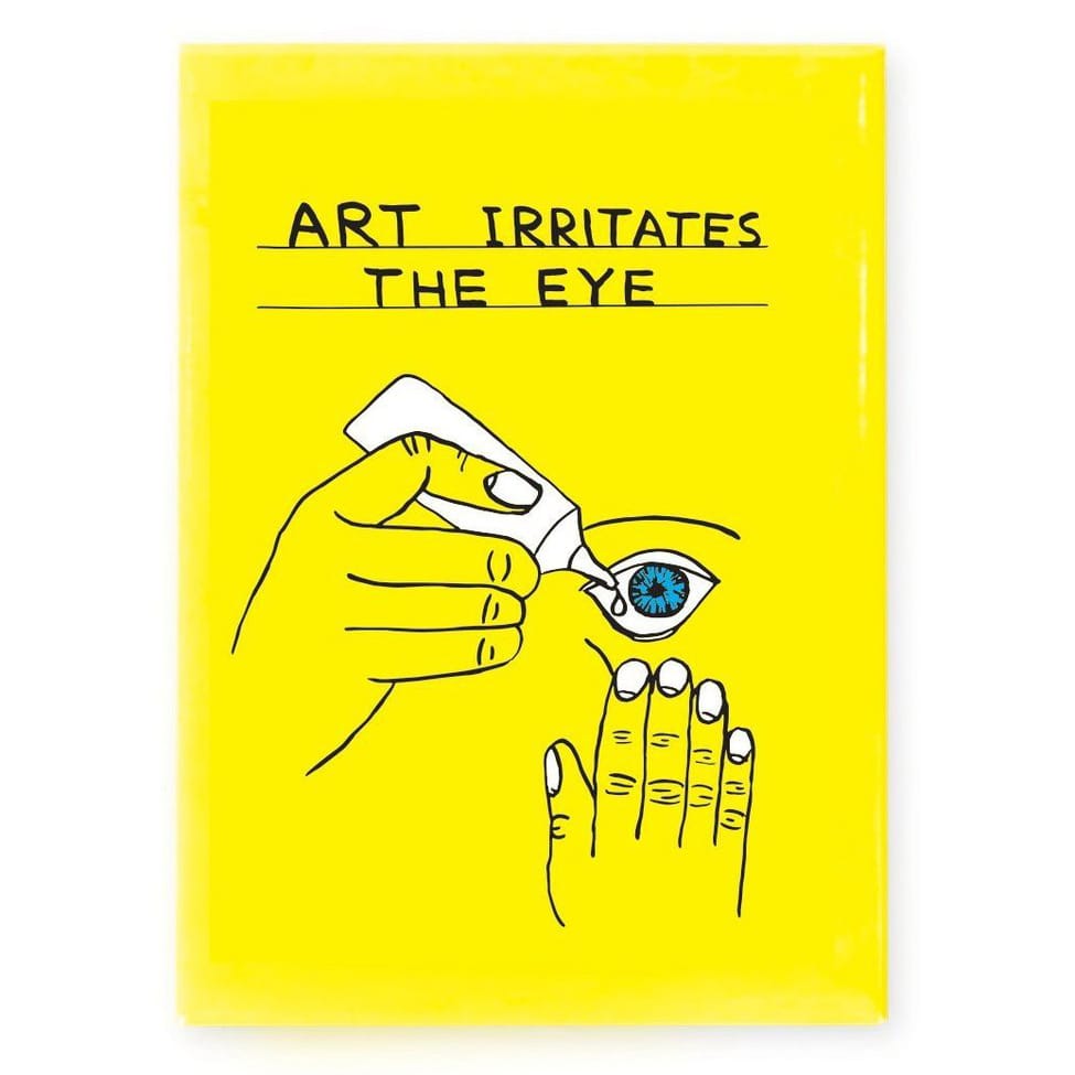 It’s no secret that we get a kick out of David Shrigley’s peculiar sense of humor, and this fresh yellow magnet is the latest addition to our stash of Shrigley stuff. Get your eye drops ready because while the intense neon color may threaten to burn your retinas, that’s kind of the point — art isn’t always supposed to be easy on the eyes.
