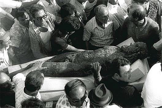 Much of the tale of the statue’s discovery has been pieced together through interviews and testaments of eyewitnesses, curators, and dealers — many of whom are now dead. As Christa Roodt, a professor of art law and business at the University of Glasgow recounted in 2015, the lore surrounding the statue’s surfacing holds that it was first found by Italian fisherman while they were trawling international waters in the Adriatic. It was then smuggled into a seaside Italian town, possibly inside a bathtub. It was initially sold for 3.5 million lira (Around $43,500 dollars today) to Giacomo Barbetti, a nearby Italian dealer who bought and sold antiquities. It was quietly transported to Brazil and later to London, before ultimately being conserved in Germany in 1972, at the workshop of Herzer Heinz.