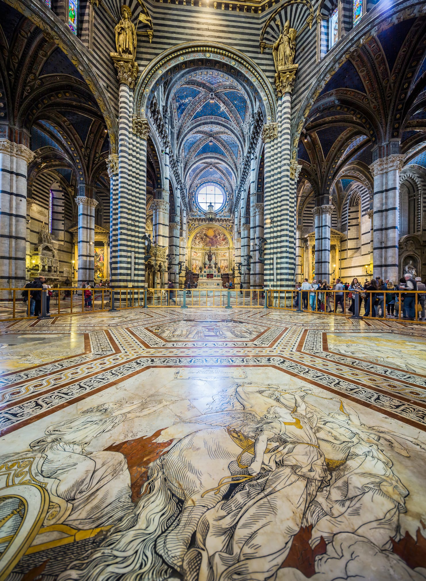 The inlaid marble mosaic floor is one of the most ornate of its kind in Italy, covering the whole floor of the cathedral. (photo via Getty Images)