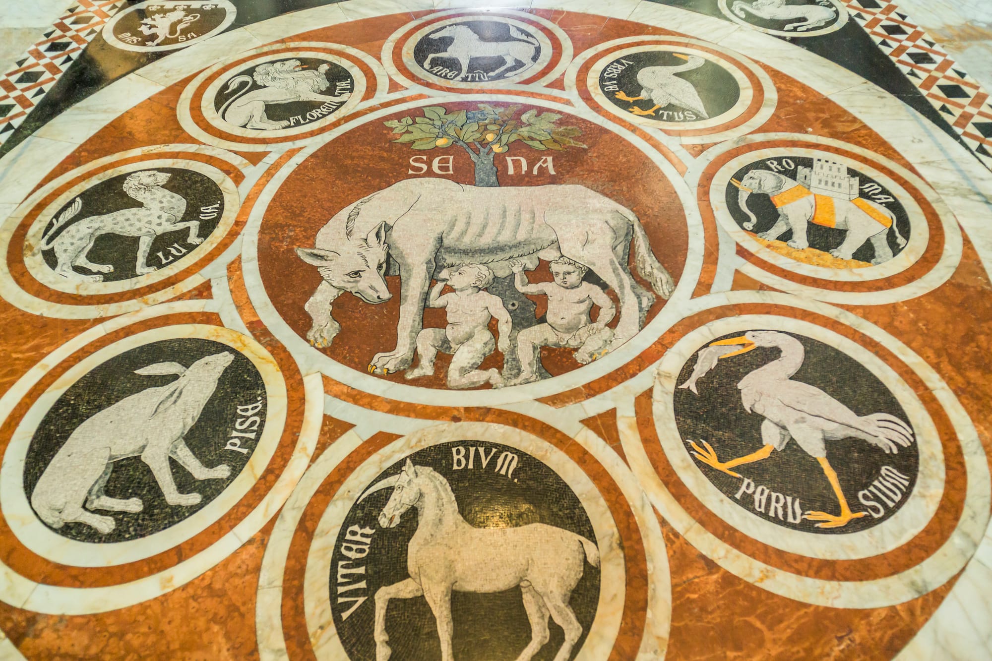 Detail of "The She-Wolf of Siena" in the mosaic floor of the cathedral (photo via Getty Images)
