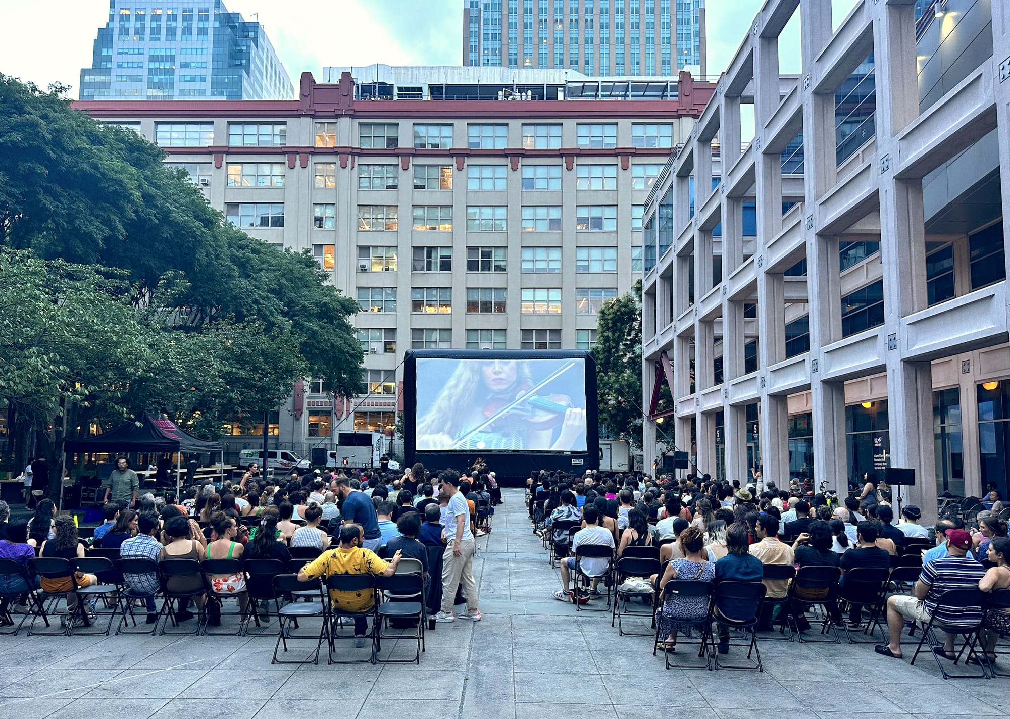 Before the screening, Mehrnam Rastegari performed a traditional Iranian violin set. In the back of Brooklyn Commons Park, a seemingly endless line formed in front of Bibi Bakery’s pop-up selling saffron ice cream sandwiches and faloodeh, a frozen Persian dessert with thin noodles, rose water, and lime juice.