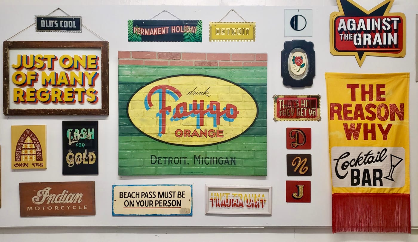 One can find examples of vintage and contemporary hand-painted signs all over the Michigan city. Signs Galore!, an exhibition at KO Gallery, showcases some of this rich tradition.