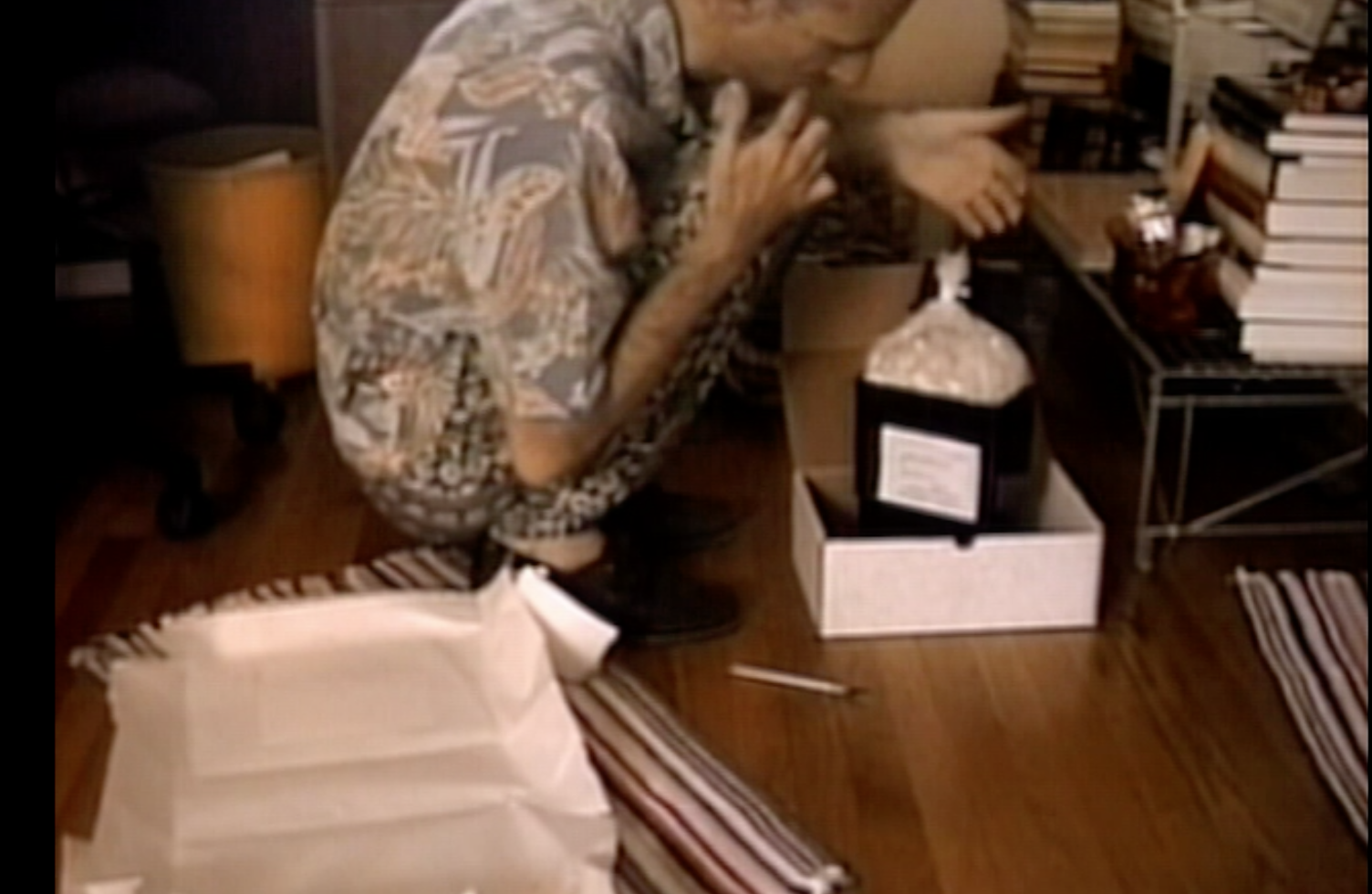 Right after Joslin’s body is taken away, the film cuts to Massi discussing a self-help guide he got from his counselor. He says sarcastically that he is in the “anger” stage of grief. Flipping through the book, he mocks its cheesy poems and bland pronouncements, occasionally stopping to reflect on what he’s going through. Toward the end of the scene, he looks into the camera and says: “This is day two after Tom died.” This surprised me when I first saw the film, as I assumed much more time had elapsed. Why was he still subjecting himself to the camera? In the next scene, Massi makes a mess when he unboxes his partner’s ashes. “Tom, you’re all over the place!” he exclaims. Many documentaries run aground trying to navigate the space between normality and tragedy. Not this one.