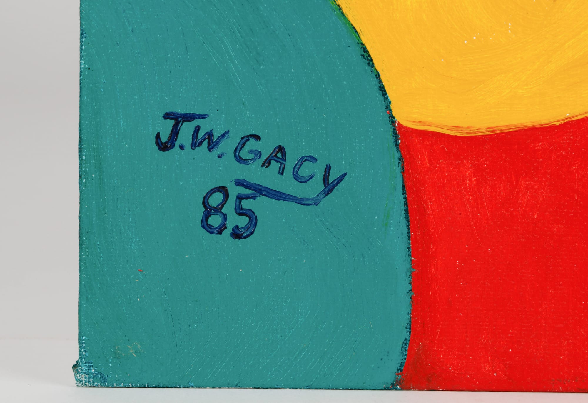 George Thomas, a consignments coordinator at Material Culture, told Hyperallergic that the painting was consigned to them by an American art collector and spoke about the process of authenticating the work through signature and inscription analysis. The postmarked letter, he said, provided "ample forensic proof that this is a work by John Wayne Gacy."