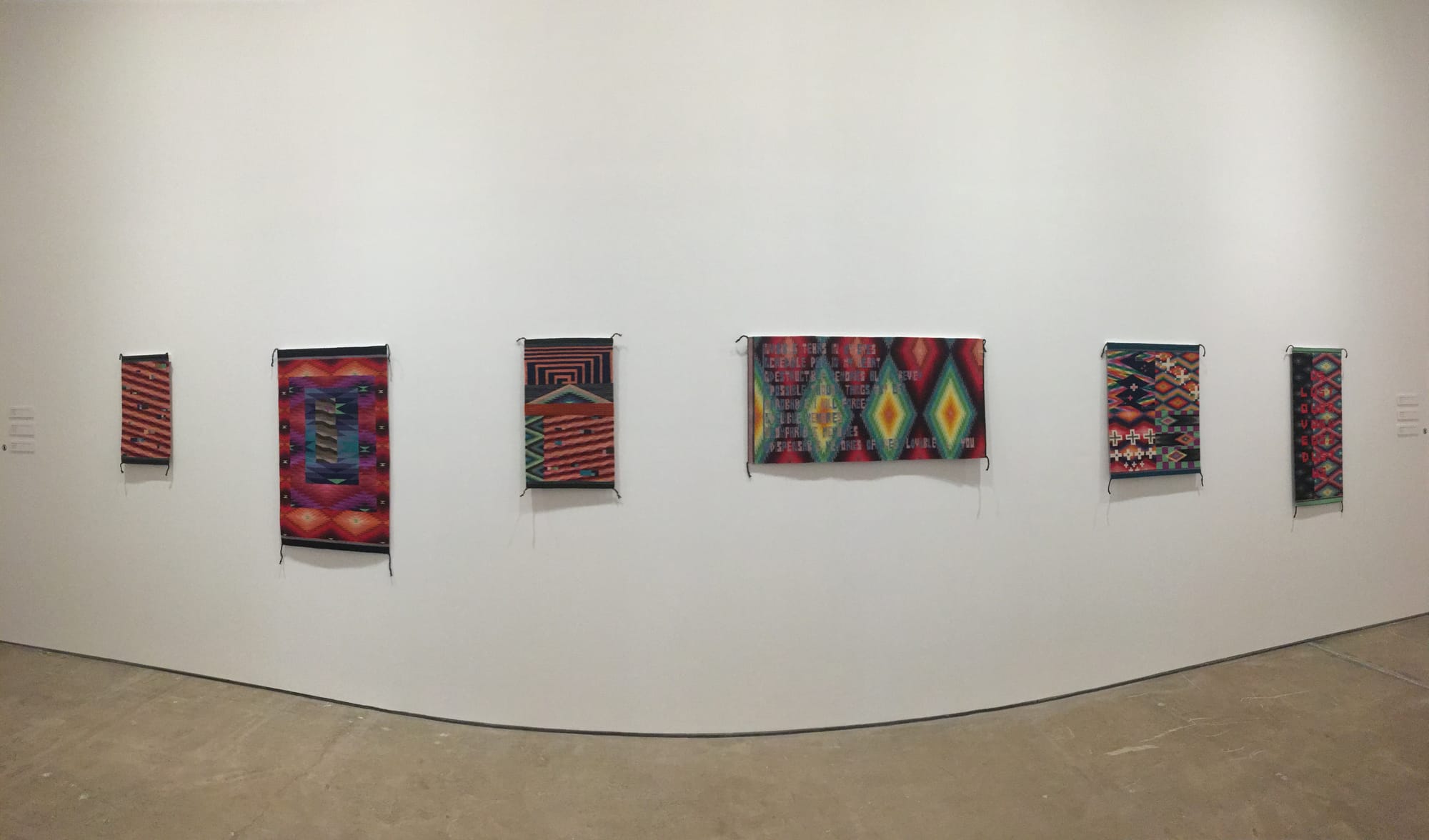 However, not all the strong works received the space, reverence, and prominence they deserve. Melissa Cody, a Diné weaver and textile artist based in Los Angeles, whose work is lauded for its stellar technique, innovation, and commentary, felt, to me, like a curatorial afterthought. Cody was represented by small-scale work. While enjoyable, it’s disappointing that her gorgeous, poignant large-scale weavings are not included. Moreover, her works’ installation in what amounts to a narrow hallway does not do it justice — and borders on curatorial sexism, as larger spaces seem reserved for the male artists in the show. In general, the placement of work by Indigenous women seemed thoughtless, at best.