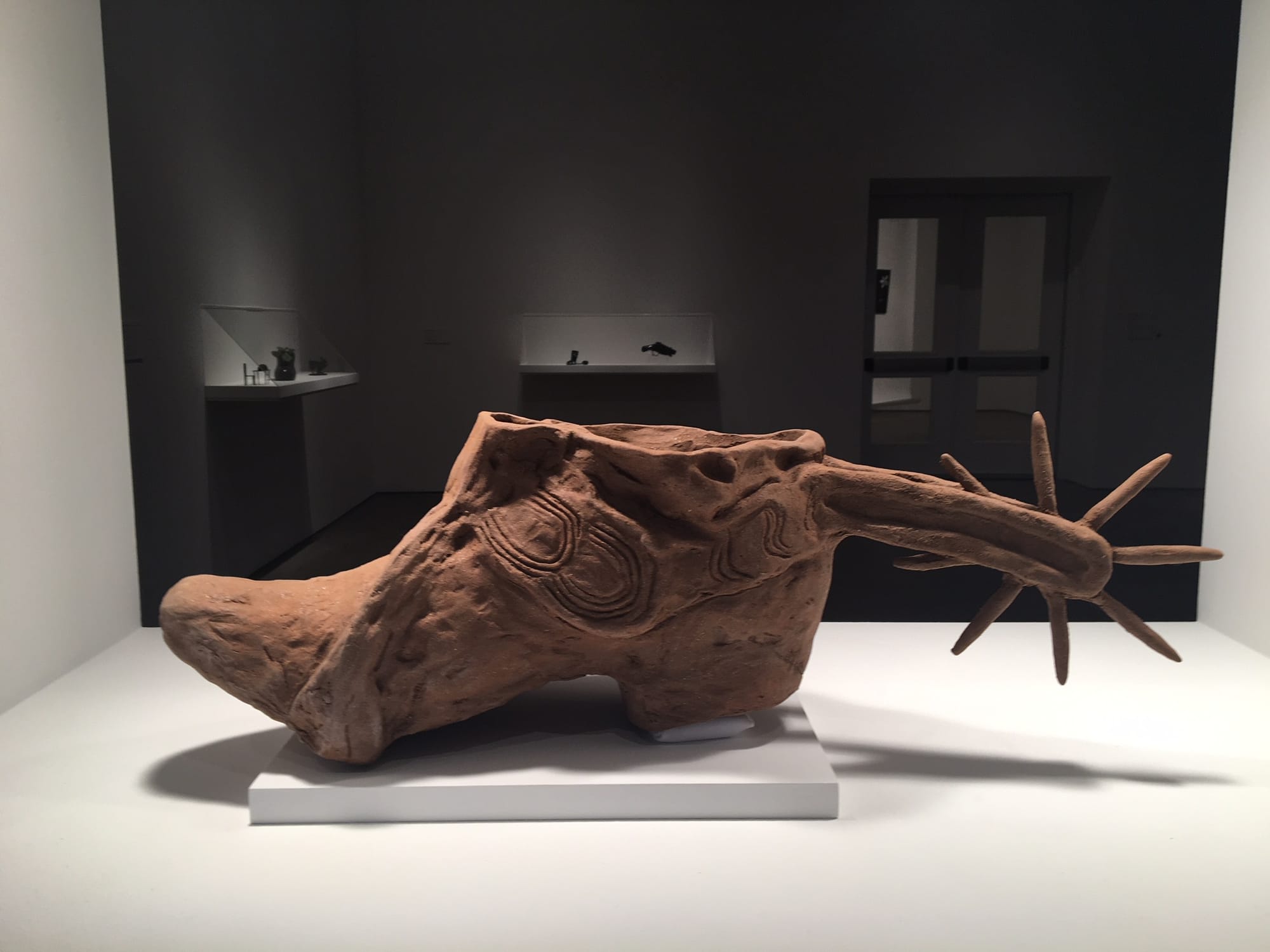 While the decision to curate collaboratively is presumably an attempt to de-privilege any one curatorial vision, the result is a curatorial vision that is hard to tease out. However, one curatorial collaboration was more successful. In 1997, an anonymous activist artist performed an intervention on the statue of Juan de Oñate in Alcalde, New Mexico, sawing off the right foot of the man often referred to as the “last conquistador.” Oñate terrorized Puebloan communities, performing acts of rape, violence, and genocide against Indigenous bodies. In one instance, he ordered that the right foot of all men over 25 at Acoma Pueblo be cut off in retaliation for the killing of his nephew during a Spanish raid of Acoma. The SITE curatorial team commissioned a cast of the storied foot. The work is displayed in an alcove as artifact, artwork, and anti-monument to colonial violence in the Western Hemisphere. Perhaps this work best illustrates the themes the curators were trying to communicate with the show’s title.