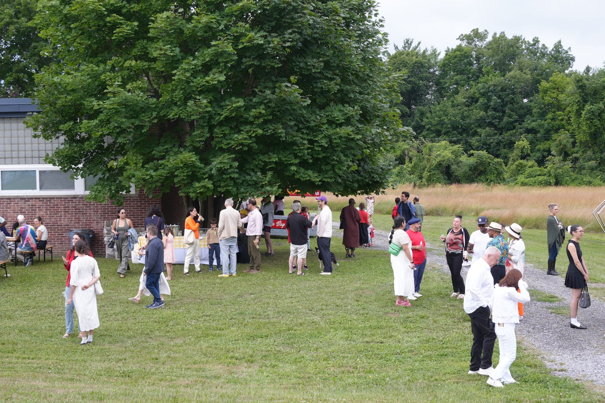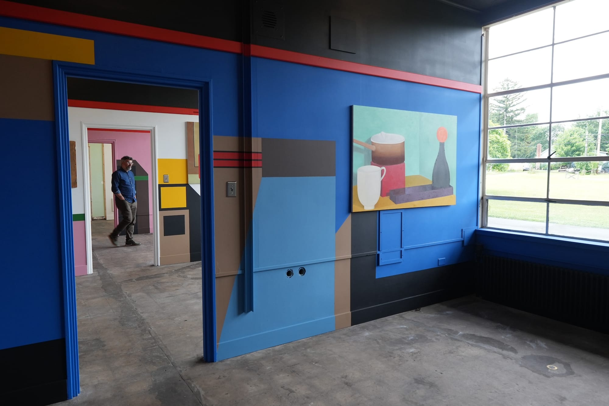 Constructed in 1952 and remodeled in the ’60s, the school had been unoccupied since the 1990s and changed hands, and prices, several times since then. The Columbia County Board of Supervisors paid $1.5 million for it in 2008, envisioning a new home for the Department of Social Services, a plan scrapped after it was met with protests. Six years later, the late interior designer and art collector Eleanor Ambos bought it for $502,500. In September 2020, a real estate listing for the property described it as "ideally suited to be a fantastic arts center or museum" or, alternatively, a nursing home or adult care facility. The galleries acquired it from Ambos's estate for a reported $1.2 million in July 2021. In the comments section of a recent post about The Campus in the local blog The Gossips of Rivertown, one critic feared "the march of money and local displacement" while others welcomed the investment in arts and culture.