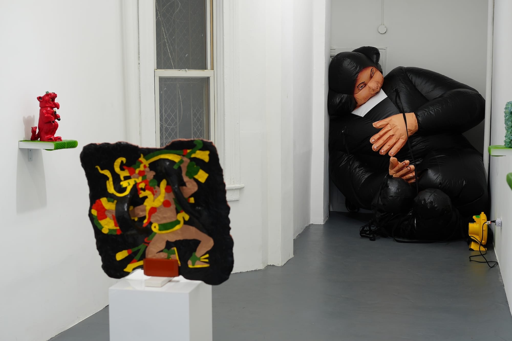 At the back of this Lower East Side gallery is an inflatable Christopher Columbus. It is an apt artistic symbol for the chaotic mood around monuments, history, and memory that has reached a feverish pace since the start of the 2020 pandemic. Jamie Martinez’s “The Rise and Fall of Christopher Columbus” (2024) inflates and deflates in an alcove-like space. It is mesmerizing to watch this awkward creature twist and turn in unexpected ways as it is filled and emptied of air. Other works by Martinez complete the show, including stone-encrusted objects, but I couldn’t stop staring at the sculpture of one of history’s most renowned genocidal maniacs, as it seems to twist and turn in a strange state of powerlessness. — HV