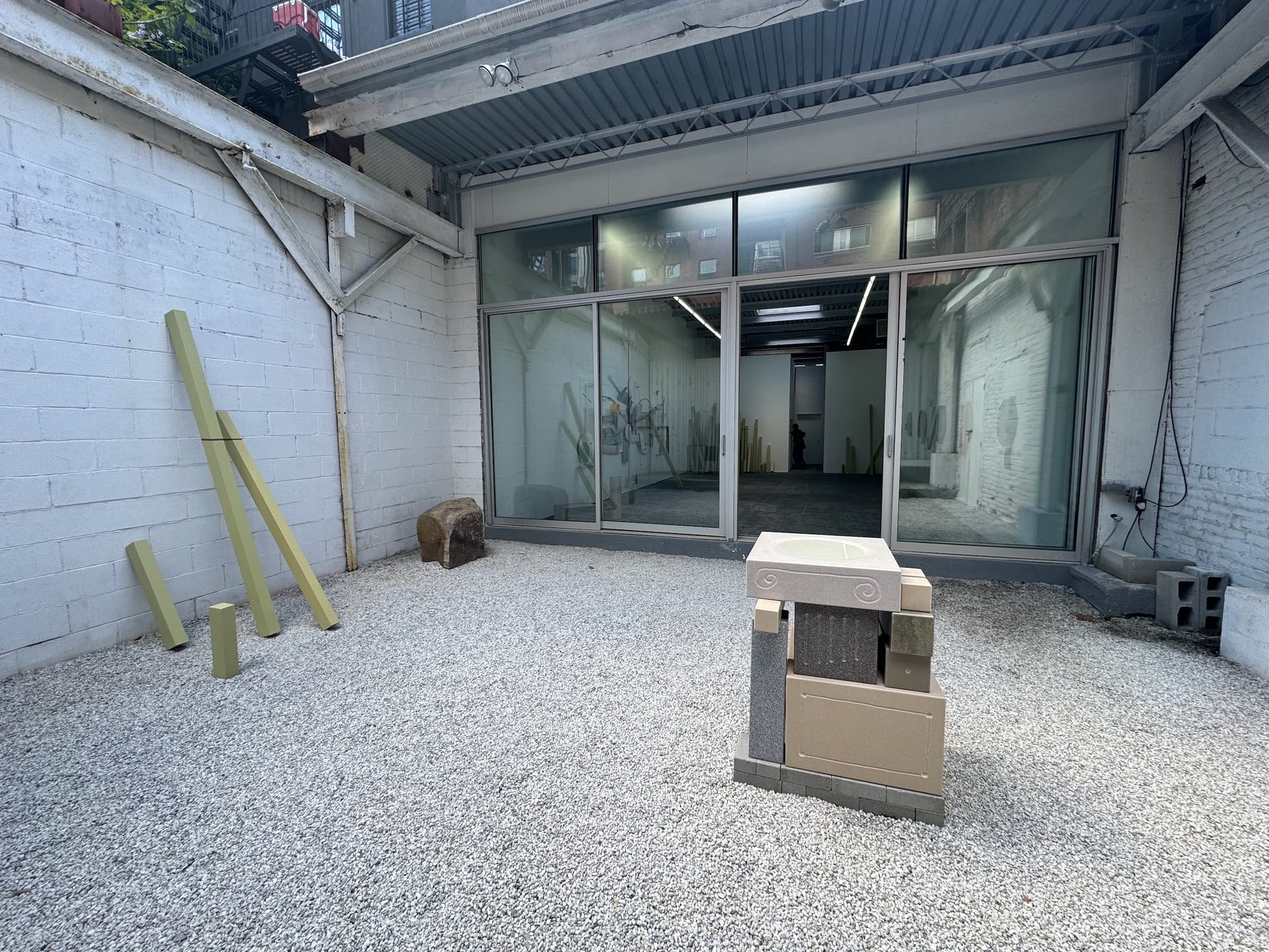 Katie Bell’s new exhibition builds on her continuing interest in El Lissitzky’s Proun Rooms and other Constructivist goodness, but here she incorporates elements that bring to mind the Memphis Group oeuvre and commercial display culture as much as fine art. Her large drawing-like sculpture “In Search of Form” (2024) appears to be where she works out her visual ideas, while incorporating objects she amasses on her travels. The more somber circular Line of Sight series on the other side of the gallery, and the stumpy “Water Table (Bird Bath)” (2024) in the backyard distill some of that thinking into elegant forms that exude a refreshing stoicism, if that’s even a thing. It’s nice to see a show use the language of formalism without necessarily feeling nostalgic, like so many exhibitions are doing nowadays. — Hrag Vartanian