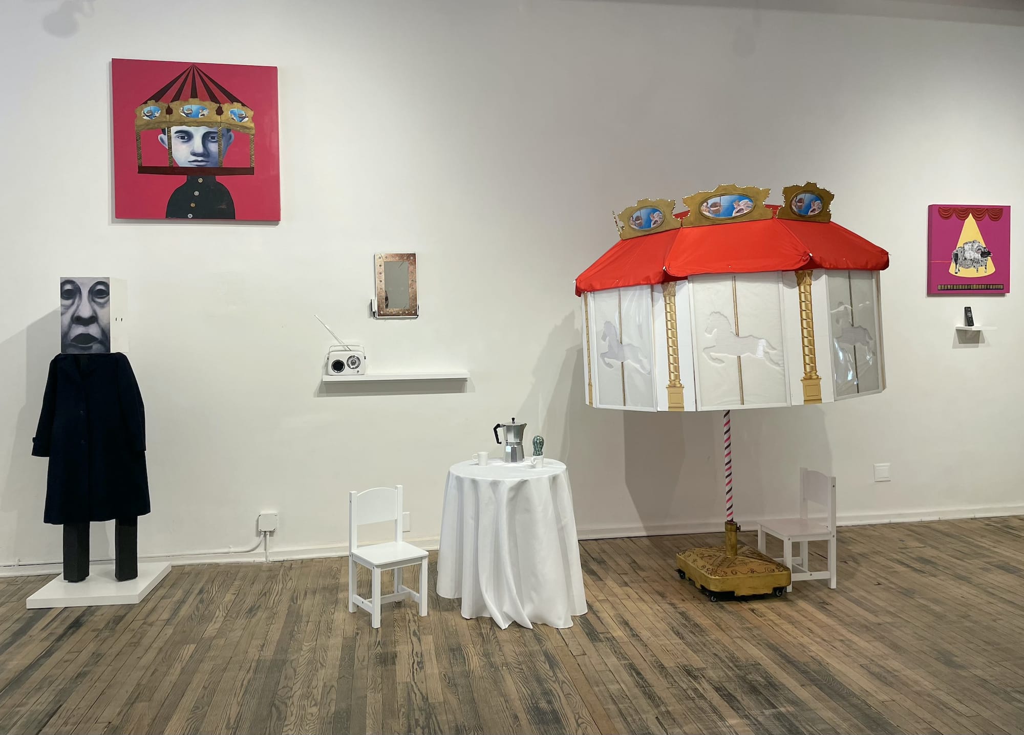 At a moment when the waking world can feel like a nightmare, what’s better than a daydream to offer respite and, perhaps, a new perspective? Multimedia artist Maiko Kikuchi’s enigmatic performances are infused with wonder and mystery but, like the daydreams that inspire her, they unfold with intention. Trained in theater arts, fashion, and sculpture, she merges these to create fantastical worlds that are at once foreign and familiar. Her professional experience with object-based theater, animation, and puppetry shines through — she’s presented performances at experimental theater venues like St. Ann’s Warehouse and La MaMa as well as art institutions. Try to get to her weekend performances (make sure to secure tickets beforehand). But if you can’t, her paintings and props are enchanting artworks in themselves. Well worth seeing on their own, they’re glimpses into the power of daydreams to sustain us. — NH