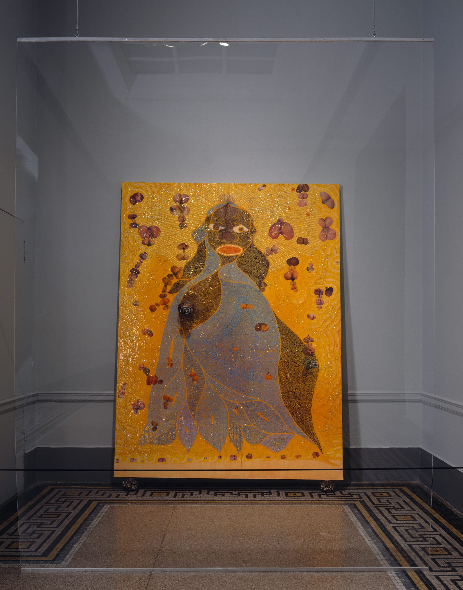 Nigerian-British painter Chris Ofili raised hackles in 1996 with his atypical mixed media rendition of “The Holy Virgin Mary,” portraying Mother Mary as a Black woman surrounded by collaged images of female genitalia and smears of elephant dung. The painting also rests on two lumps of hardened elephant dung for support — a medium that Ofili employed regularly during this point in his practice in reference to his travels in Zimbabwe. Naturally, Ofili’s painting bristled many upon its debut and international circuit in the Sensation exhibition due to its blasphemous nature at first glance, but Ofili noted to the Tate in London that he wanted to “juxtapose the profanity of the porn clips with something that’s considered quite sacred.” When the exhibition landed in the Brooklyn Museum in New York in 1999, then-mayor Rudy Giuliani was so affronted by the painting’s inclusion that he decried it as "sick stuff" and attempted to strip the museum of around $7M in annual city funding if it wasn’t removed, saying that it didn't “have a right to government subsidy for desecrating somebody else's religion." The Brooklyn Museum stood its ground despite threats of eviction and the show went on with Ofili’s painting still included, but an offended patron did splatter white paint under the display plexiglass and onto the painting in protest.