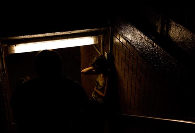 The photo above, “Greyhound, NYC” (2010), was taken near the Port Authority, on the Greyhound bus route out of town. Parrott’s book refers to taking the bus up to Boston, where she would bring drugs to her friends who sold them at raves: