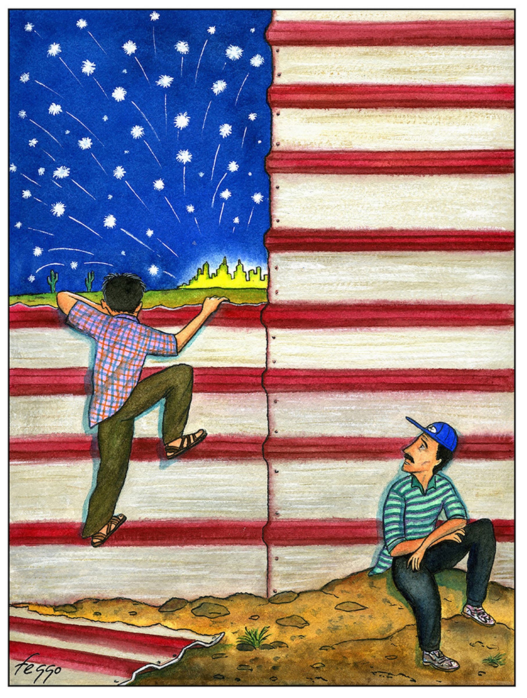 On Friday morning, August 22, illustrator Felipe Galindo Gómez opened his email to find a note from his friend. "Have you seen this?" the message read, and linked to the White House's bullet-pointed list targeting Smithsonian artworks and exhibitions. There it was: an image of his 1999 illustration "4th of July from the south border."