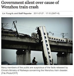 It’s been sad days here in China. On July 23, less than a month after the launch of the Beijing-Shanghai high speed railway line, two trains collided in Wenzhou, a city near Shanghai. Some 40 people reportedly died, and horrible images of the downed trains circulated around the internet, print media and television.