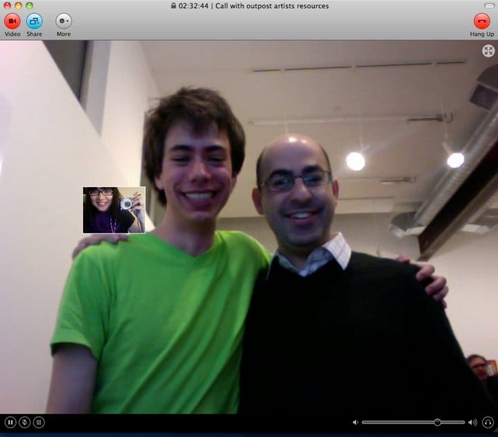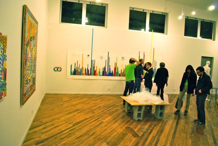 Last Friday, the virtual art world became the real one as fellow Twitter followers met one another in reality, Facebook friends shook hands and a certain performance artist crossed the thresholds between digital and analog. During #TheSocialGraph‘s opening at Outpost in Ridgewood/Bushwick, a growing community that exists largely online met in person — and actually talked. Like, with sound, instantaneously. This was all helped along by a large keg and stacks of plastic cups that may have been an exercise in relational aesthetics, but probably were not.
